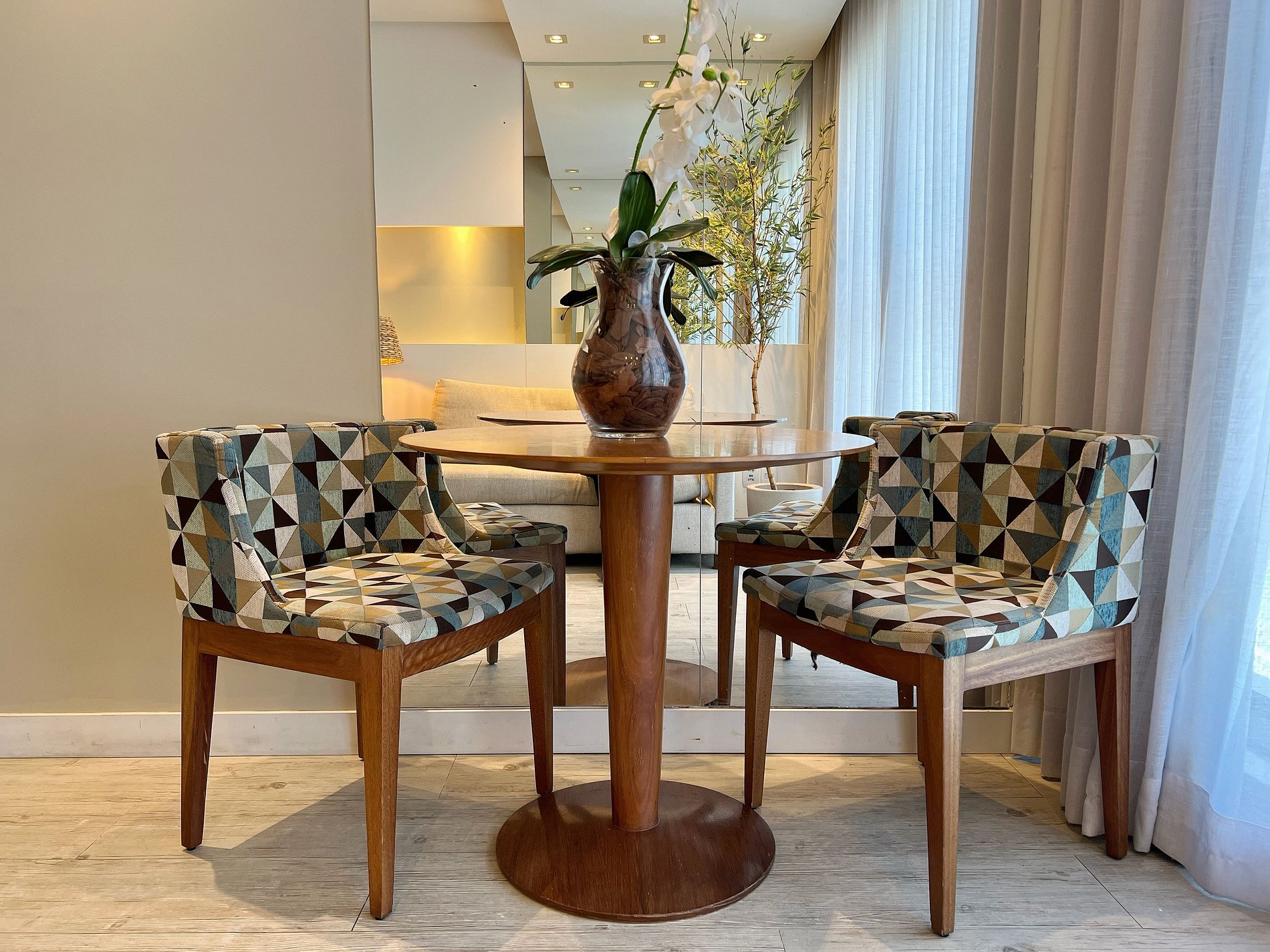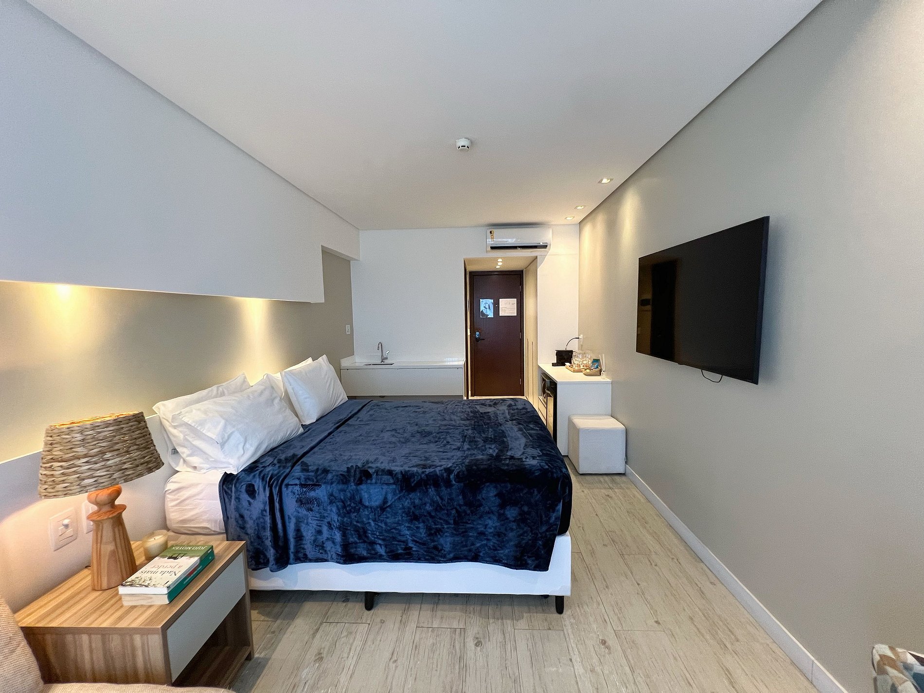 Apartamento alto luxo, decorado por arquiteta na praia de Boa Viagem, Recife, com cama king size, sofá-cama casal, TV Smart e Wi-Fi gratuito. O ambiente inclui sala de estar/jantar integradas, frigobar, micro-ondas, Split, cofre eletrônico e balcão com pia, com vista para o mar. O prédio oferece recepção 24h, academia, sauna, restaurante, serviço de quarto e estacionamento com manobrista. Localizado perto de shoppings, restaurantes, bares e com fácil acesso ao transporte (táxi, Uber).