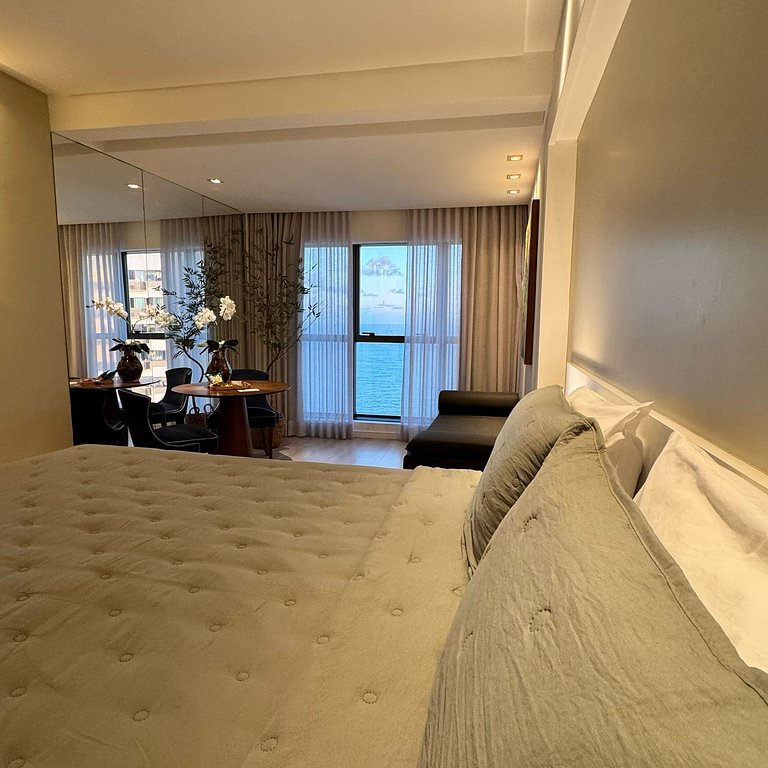 Flat Beira Mar Andar Alto com Incrível Vista do Mar