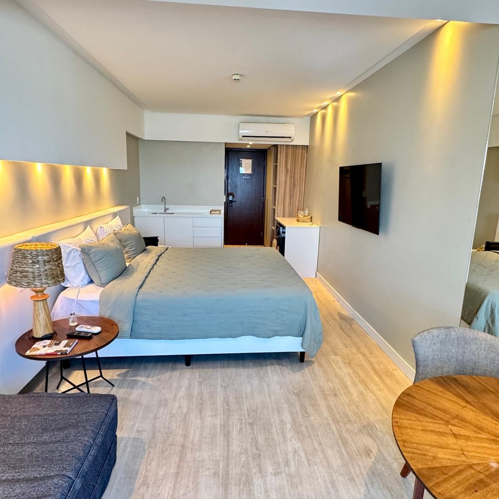 Apartamento com varanda e uma incrível vista do mar, decorado por arquiteta, o nosso apartamento dispõe de uma confortável cama king size e um sofá cama casal, TV Smart, sala de estar e de jantar integradas, sistema de iluminação diferenciada, cortinas com black out, mesa de jantar/trabalho, cadeiras, frigobar, micro-ondas, Split, cofre eletrônico, balcão com pia e uma maravilhosa varanda com vista panorâmica da praia de Boa Viagem. Apartamento decorado por arquiteta, pensado nos mínimos detalhes. Temos aqui um apartamento com varanda, com uma vista de tirar o fôlego. Apartamento com muito charme, romântico e aconchegante, preparado para quem vem a lazer ou a trabalho e precisa descansar e ter contato com a natureza, o mar e o céu, em um ambiente propício de relaxamento, através de nossa varanda a céu aberto. Aqui você terá todo o conforto e aconchego de sua casa. O nosso prédio dispõe de recepção bilíngue 24h, academia, sauna, restaurante das 06:30 as 22:30h. Durante a sua estadia, estaremos prontos para ajudá-lo via WhatsApp. Estamos localizados em área nobre do Recife, na beira mar da praia de Boa Viagem, muito próximo a shoppings, excelentes restaurantes e bares, salão de beleza, pubs, supermercados e padaria. Para ir caminhando, na rua detrás do prédio, temos uma frutaria com itens básicos de conveniência, alimentos, bebidas, onde também é vendido itens de padaria. Ainda na rua detrás, temos restaurantes de referência, com destaque para o Kojima (culinária japonesa), Tratoria (cozinha italiana), Ça Va, Hot Spot e Botega Bastardi (cozinha internacional). Como dica de bar, para beber e petiscar, temos o Tatu Bola e o Fidalgo. O Shopping Rio Mar e o Consulado Americano ficam a 1km. O Aeroporto Internacional do Recife e o Centro de Convenções ficam a 15 minutos de carro. Para se locomover na cidade, recomendamos alugar um carro ou, se preferir, pegar um taxi ou chamar um uber. O nosso apartamento dispõe de secador de cabelo potente, ferro elétrico disponível na passadoria do prédio localizado no piso P e outros itens que vão tornar a sua estadia ainda mais agradável. Estacionamento privativo pago na acomodação, serviço de manobrista 24h.