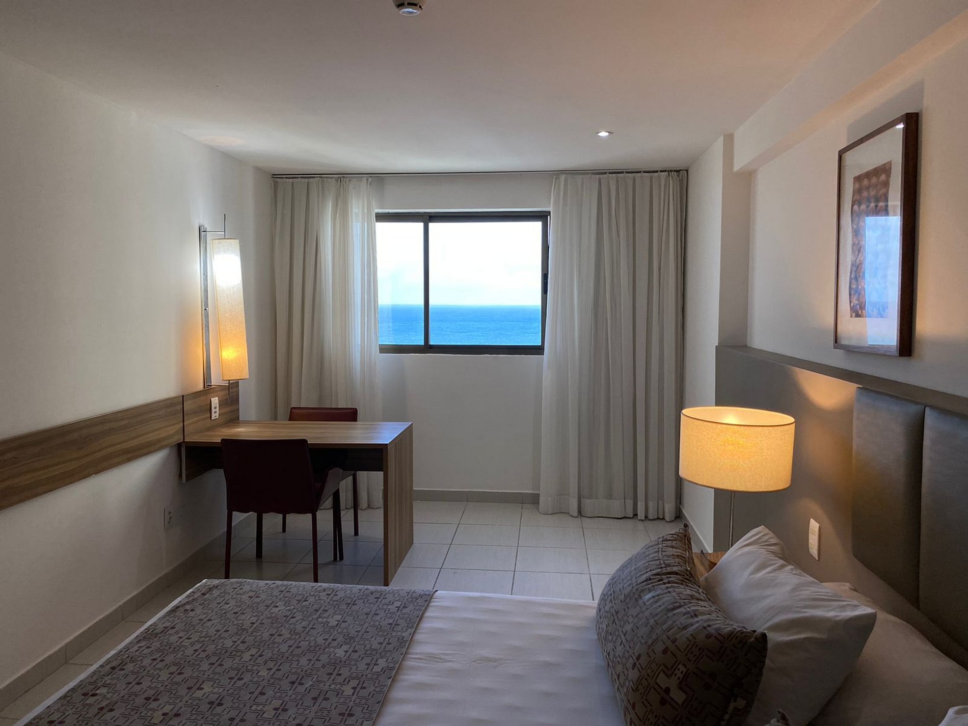 Apartamento Standard andares altos, com uma confortável cama king size, TV Smart 50PL", TV a cabo, cortinas com black out, frigobar, iluminação diferenciada, microondas, split, cofre eletrônico e uma maravilhosa vista do da praia de Boa Viagem. Wi fi e estacionamento gratuitos. Apartamento pensado nos mínimos detalhes, a fim de proporcionar aos nossos hóspedes todo o conforto e aconchego de suas casas. O nosso prédio dispõe de recepção bilíngue 24 h, academia, piscina, sauna, serviço de quarto 24 h, restaurante 24 h. Durante a sua estadia, estaremos prontos para ajudá-lo via WhatsApp. Estamos localizados em área nobre do Recife, na beira mar da praia de Boa Viagem, muito próximo a shoppings, excelentes restaurantes e bares, salão de beleza, pubs, supermercados e padaria. Para ir caminhando, na rua detrás do prédio, temos uma frutaria com itens básicos de conveniência, alimentos, bebidas, onde também é vendido itens de padaria. Ainda na rua detrás, temos restaurantes de referência, com destaque para o Kojima (culinária japonesa), Tratoria (cozinha italiana), Ça Va, Hot Spot e Botega Bastardi (cozinha internacional). Como dica de bar, para beber e petiscar, temos o Faaca e o Fidalgo. O Shopping Rio Mar e o Consulado Americano ficam a 1 km. O Aeroporto Internacional do Recife e o Centro de Convenções ficam a 15 minutos de carro. Para se locomover na cidade, recomendamos alugar um carro ou, se preferir, pegar um taxi ou chamar um uber. Há um ponto de taxi em frente ao prédio. O nosso apartamento dispõe de secador de cabelo potente, ferro elétrico e outros itens que vão tornar a sua estadia ainda mais agradável.