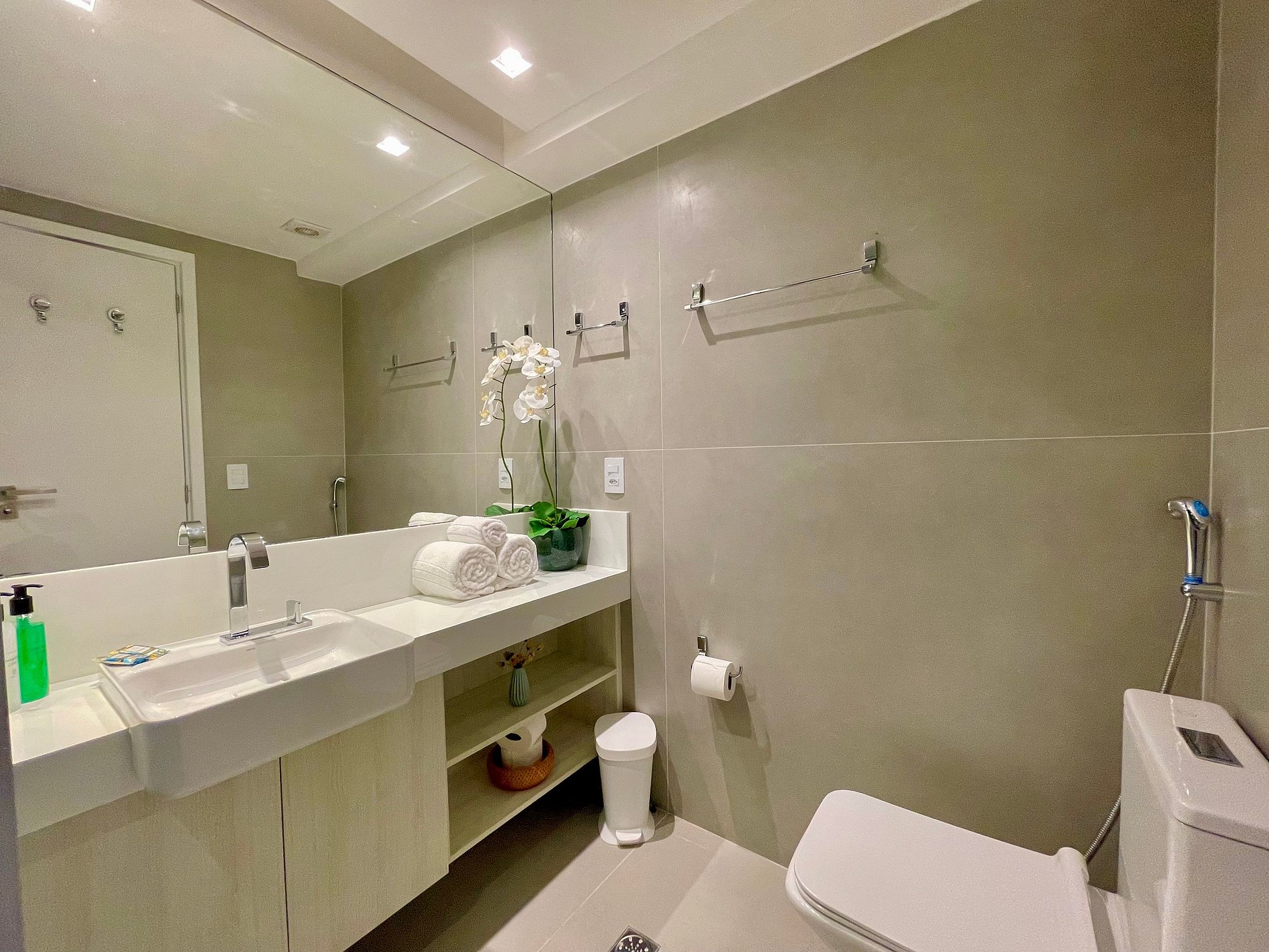 O nosso prédio dispõe de recepção bilíngue 24h, academia, sauna, restaurante.