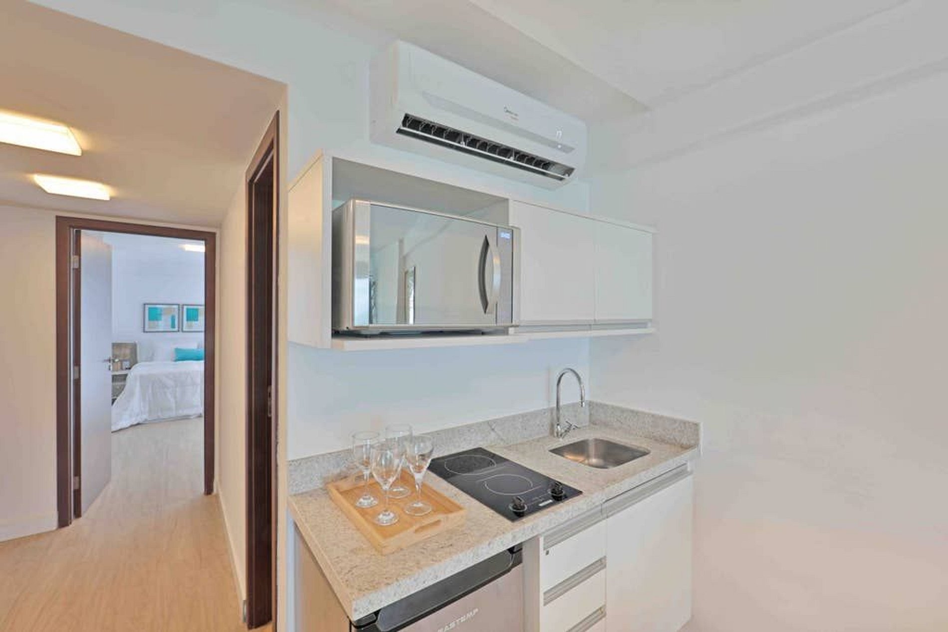 Apartamento premium com dois ambientes, vista para o mar e a cidade, decorado por arquiteta. Oferece cama queen, sofá-cama, TV Smart, Wi-Fi gratuito, cozinha compacta com micro-ondas, frigobar, e balcão com pia. O prédio possui recepção bilíngue 24h, academia, sauna, restaurante, e estacionamento pago com manobrista. Localizado na beira da praia de Boa Viagem, próximo a shoppings, restaurantes e bares. Serviço de suporte via WhatsApp e conveniência nas redondezas, como frutarias e restaurantes.