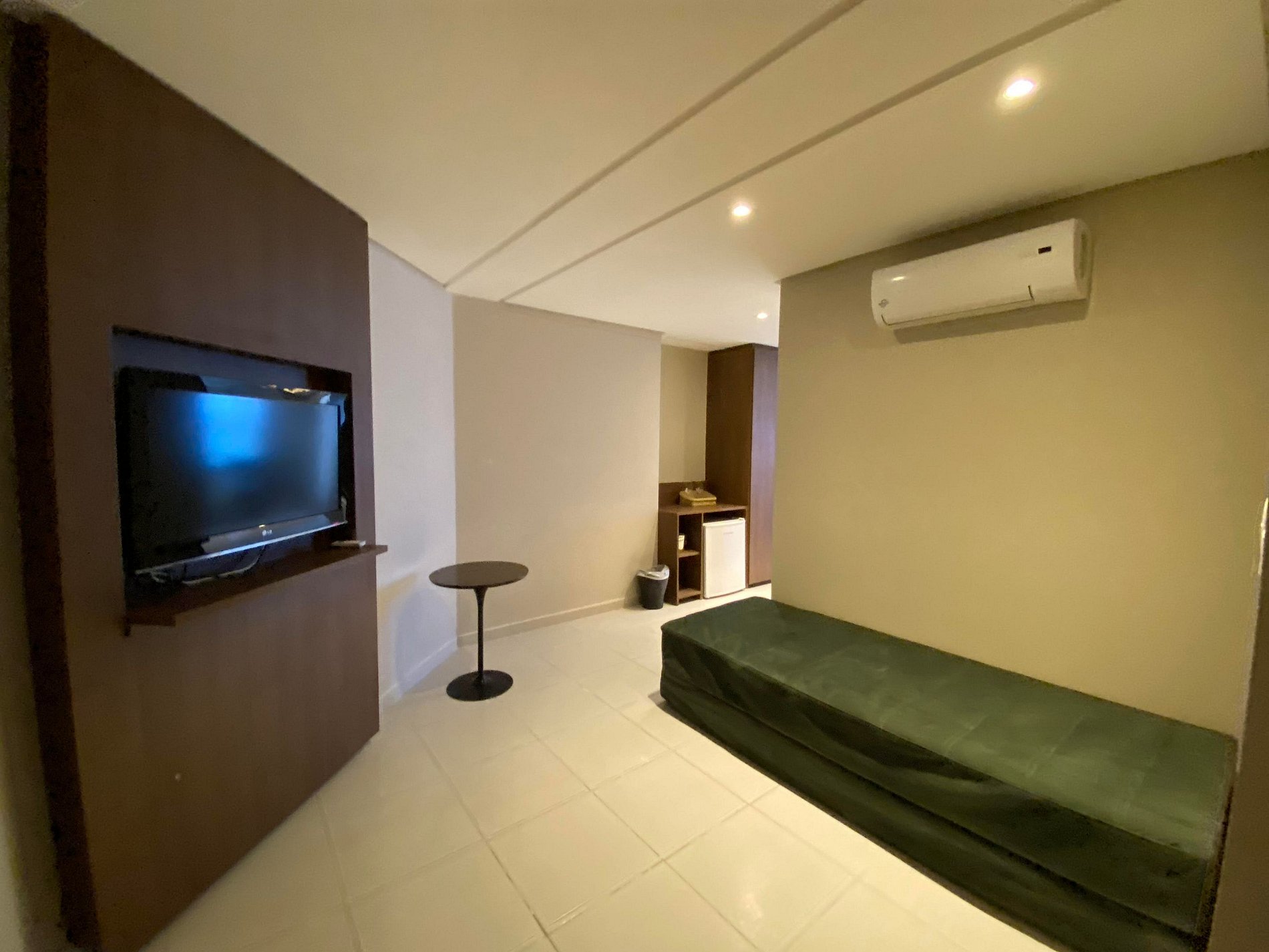 Suite com cama king-size, sofá-cama, TV a cabo, Wi-Fi gratuito e vista para a praia. Inclui frigobar, Split, cofre e mesa de trabalho. O prédio oferece recepção 24h, academia e restaurante. Localização privilegiada, perto de shoppings, restaurantes e bares.