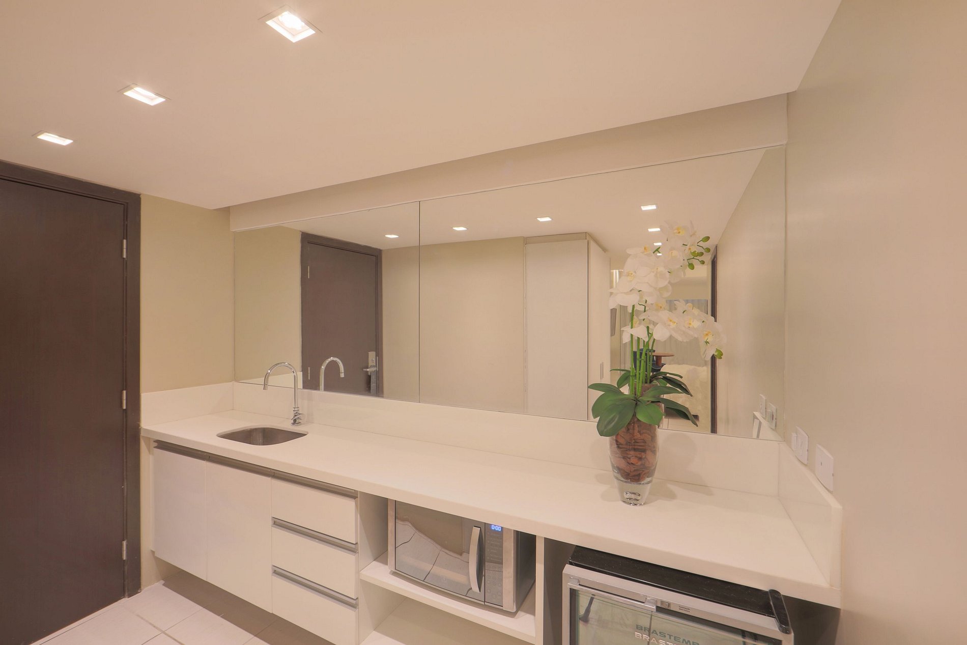 O nosso prédio dispõe de recepção bilíngue 24h, academia, sauna, restaurante das 06:30 as 22:30h.