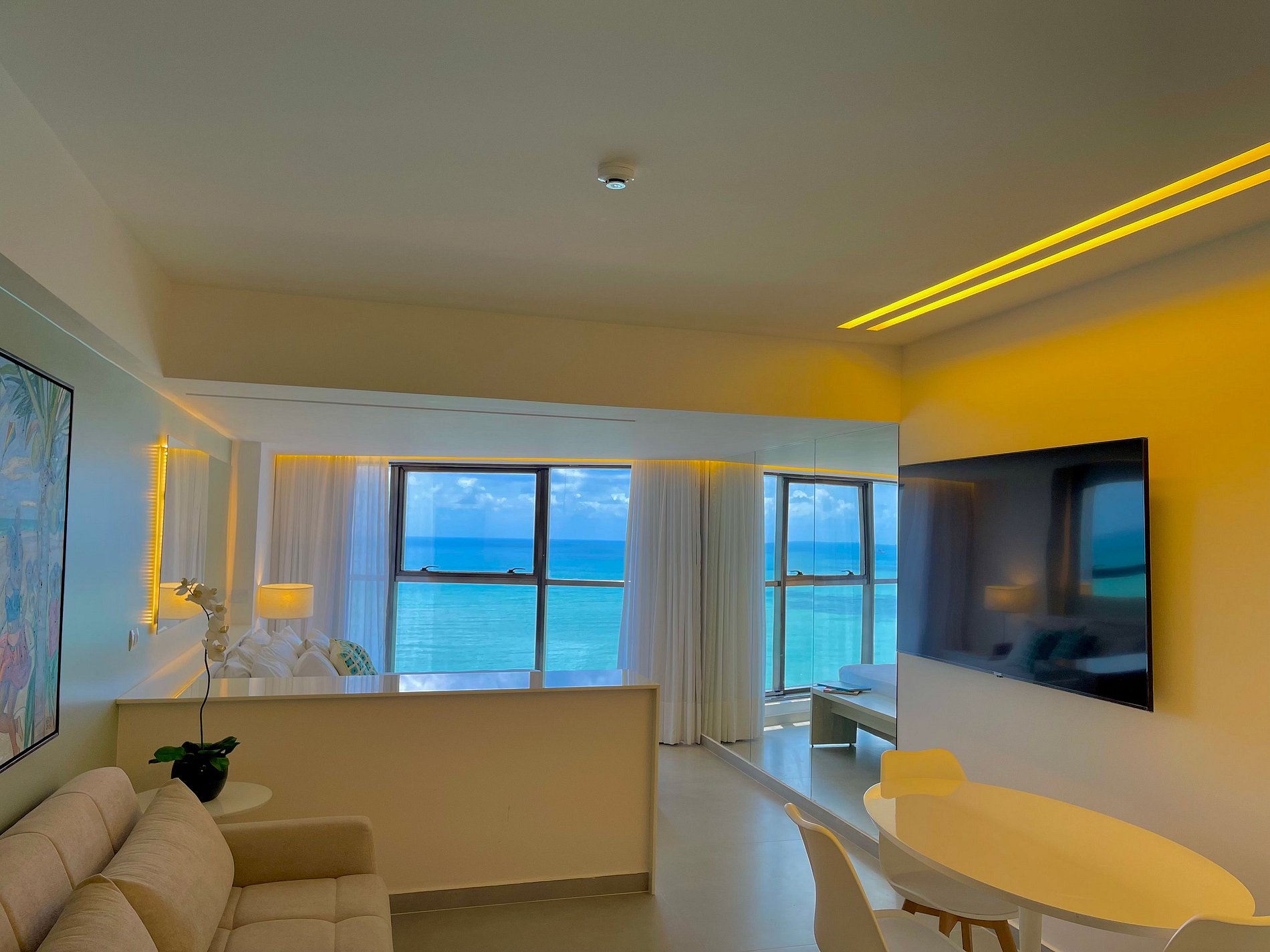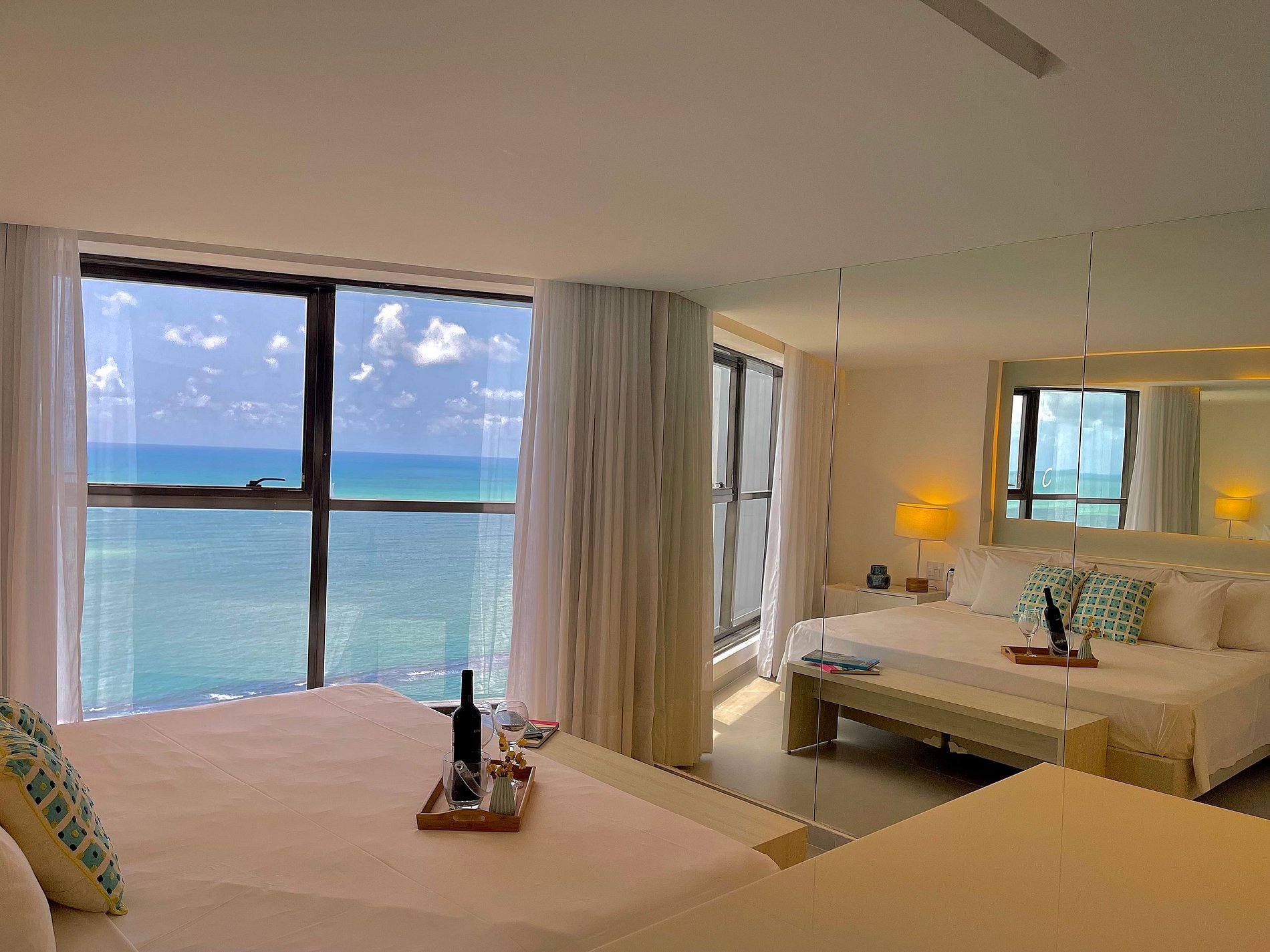 Apartamento deluxe com cama king, TV smart, iluminação diferenciada, cortinas blackout, sofá, mesa de jantar/trabalho, geladeira, micro-ondas, Split, cofre eletrônico, balcão com pia e vista para a praia de Boa Viagem. Wi-Fi gratuito. O prédio oferece recepção bilíngue 24h, academia e restaurante. Localizado na beira-mar da praia de Boa Viagem, próximo a shoppings, restaurantes, bares e outros serviços. A 1 km do Shopping Rio Mar e 15 minutos do Aeroporto.