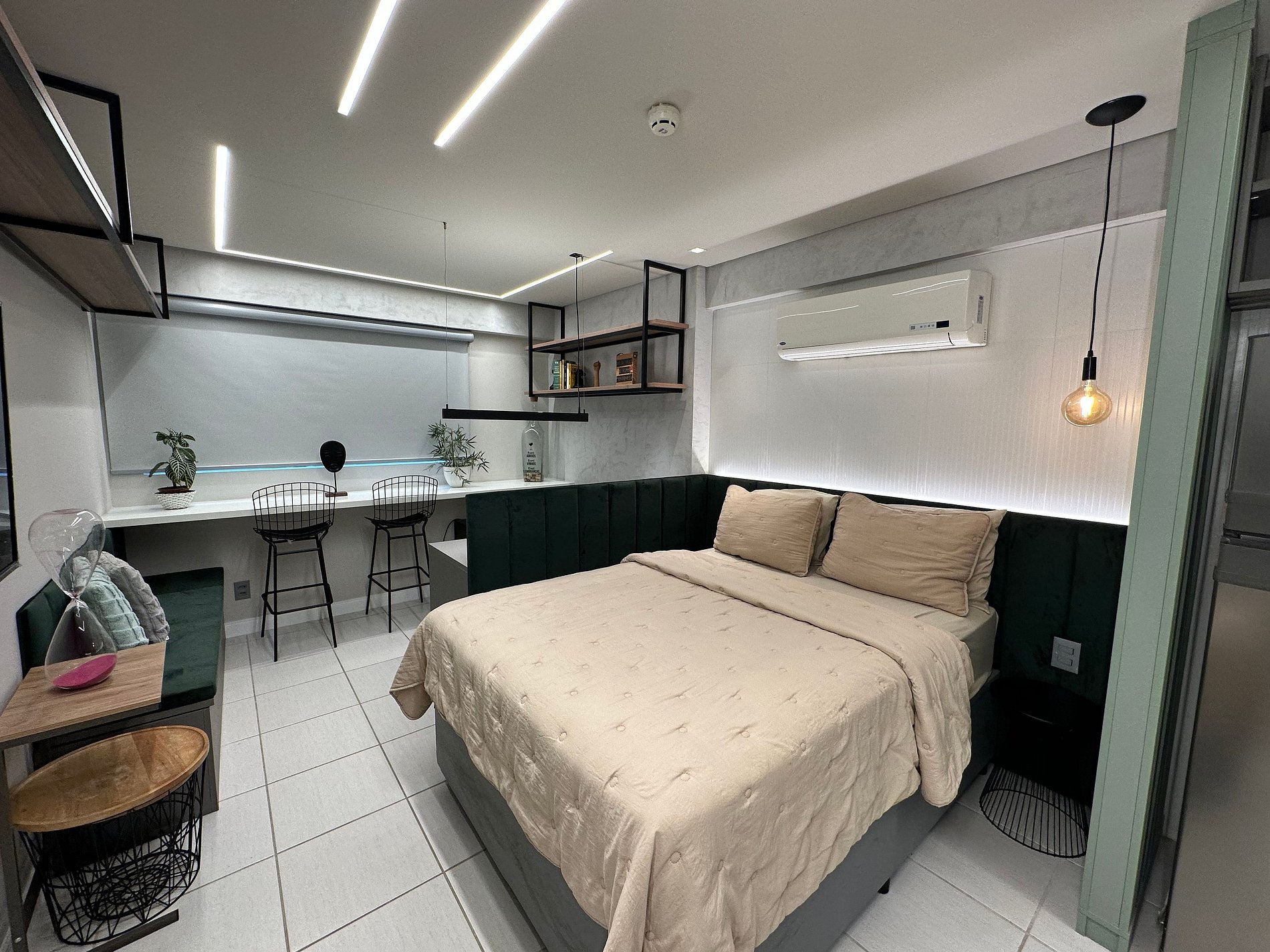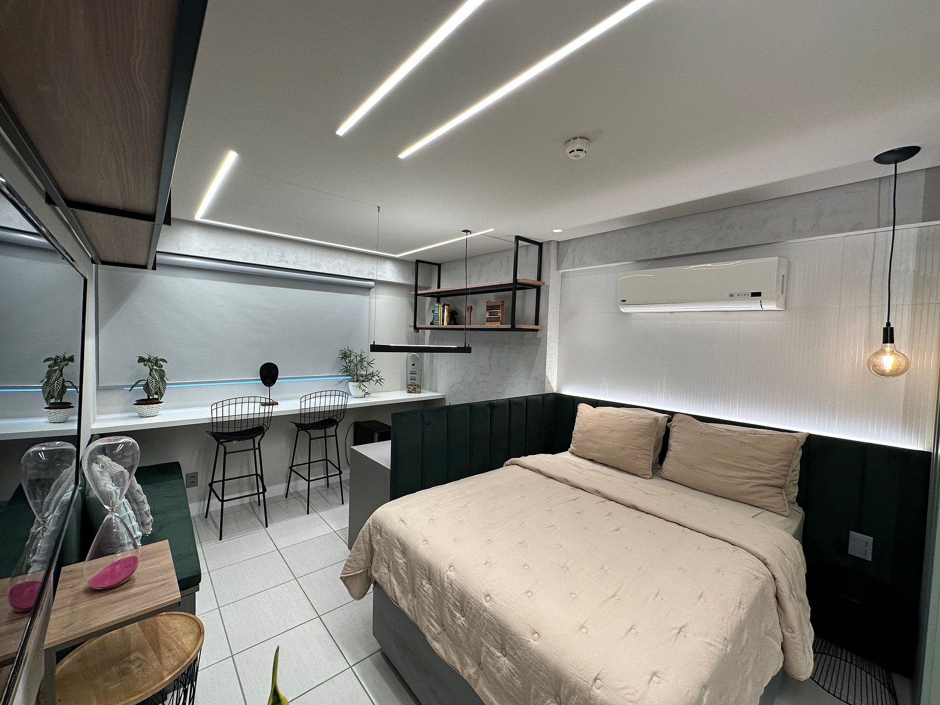 Flat com decoração clean e minimalista, com uma confortável cama de Queen, TV smart, iluminação diferenciada, cortinas blackout e uma vista incrível da praia de Boa Viagem. Conta com cozinha equipada, Wi-Fi gratuito e diversas comodidades como sistema de climatização, cofre eletrônico e serviços de recepção bilíngue 24h. O prédio possui academia, sauna, restaurante e estacionamento privativo. Localizado em área nobre de Recife, próximo a shoppings, restaurantes e bares.