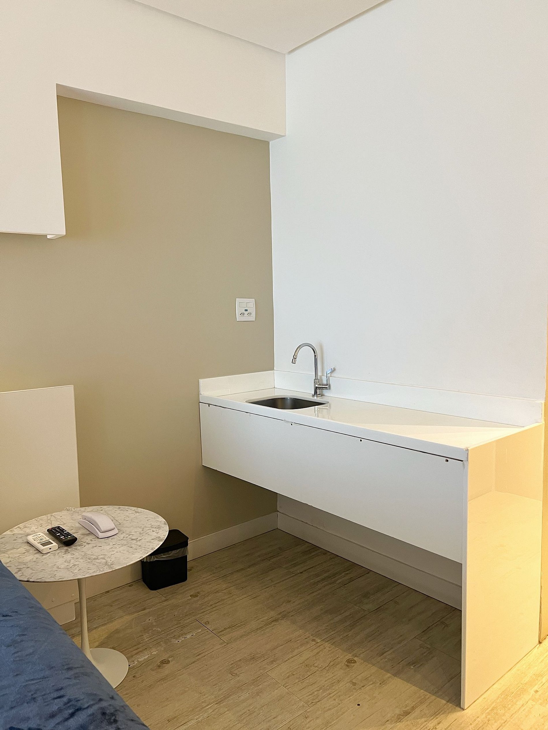 O nosso prédio dispõe de recepção bilíngue 24h, academia, sauna, restaurante das 06:30 as 22:30h.