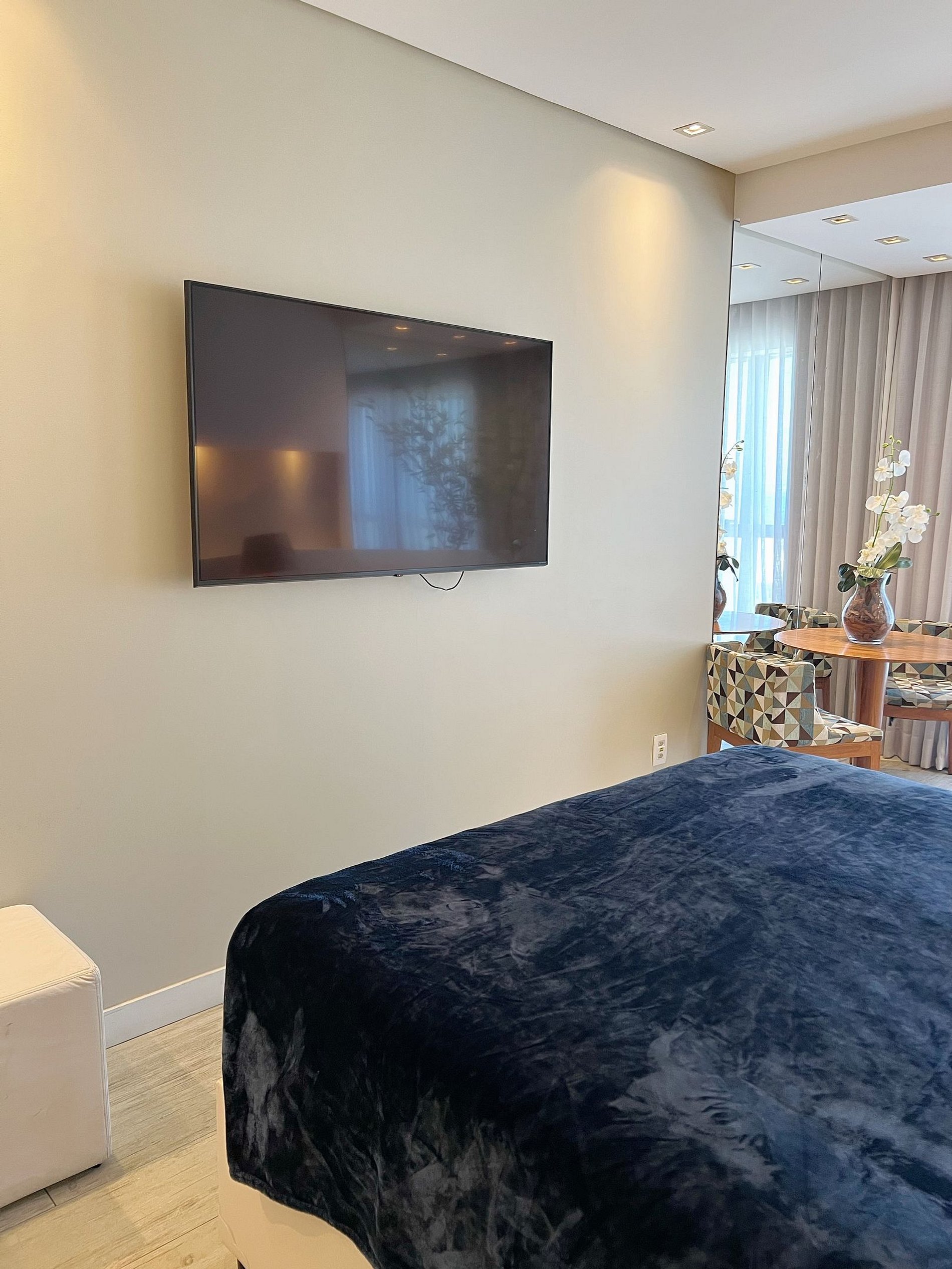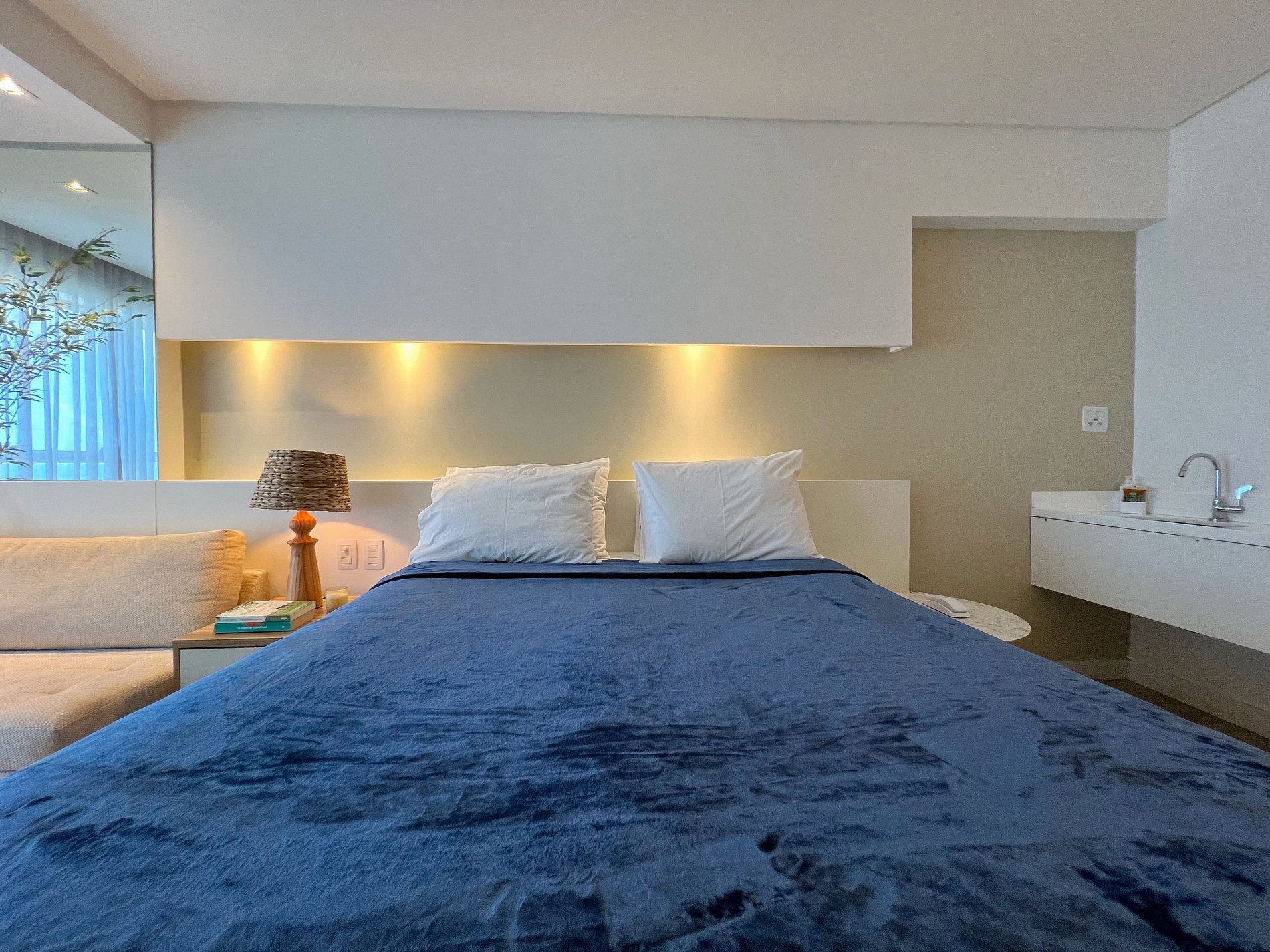 Apartamento alto luxo, decorado por arquiteta na praia de Boa Viagem, Recife, com cama king size, sofá-cama casal, TV Smart e Wi-Fi gratuito. O ambiente inclui sala de estar/jantar integradas, frigobar, micro-ondas, Split, cofre eletrônico e balcão com pia, com vista para o mar. O prédio oferece recepção 24h, academia, sauna, restaurante, serviço de quarto e estacionamento com manobrista. Localizado perto de shoppings, restaurantes, bares e com fácil acesso ao transporte (táxi, Uber).