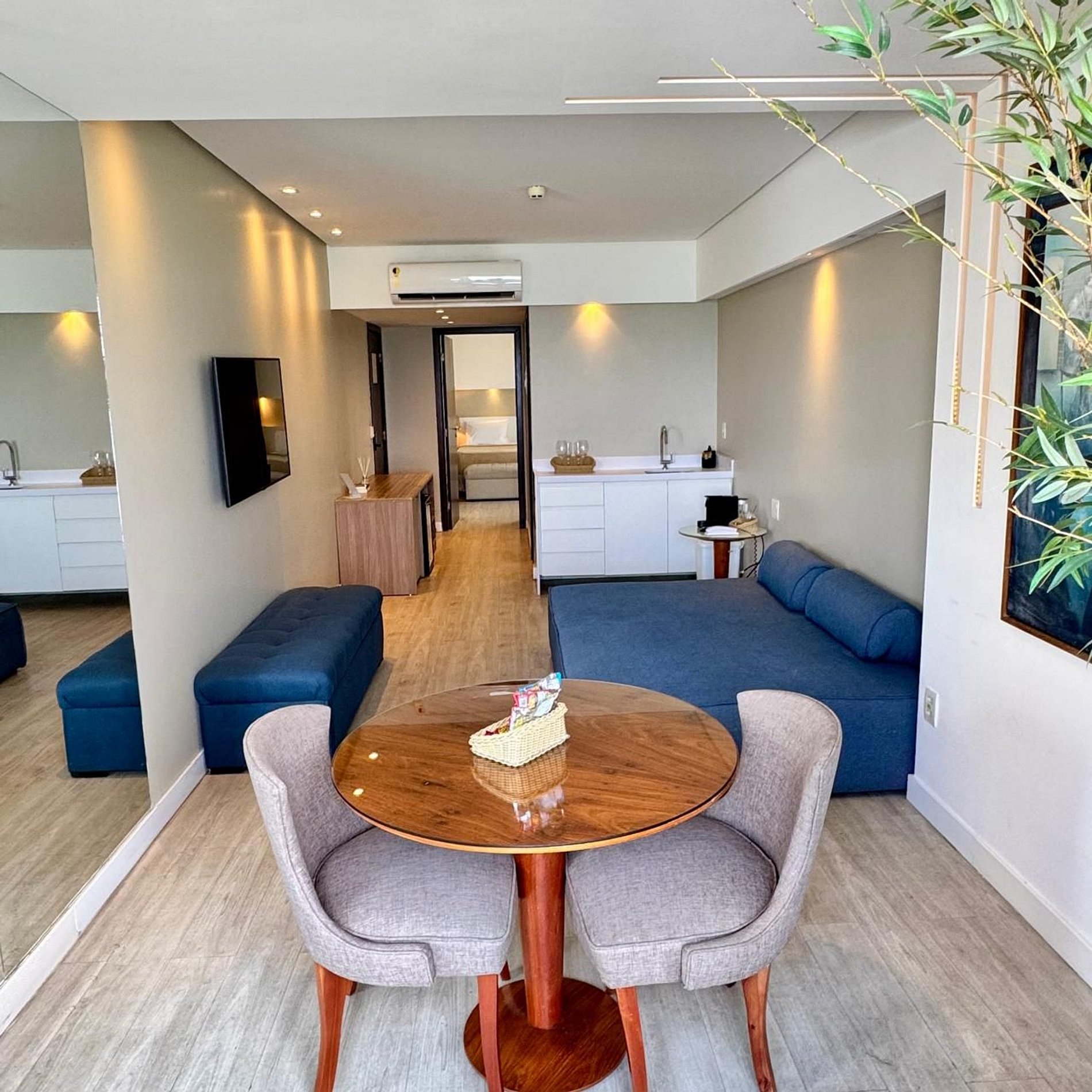 As chaves do apartamento são cartões magnéticos preparados na recepção.