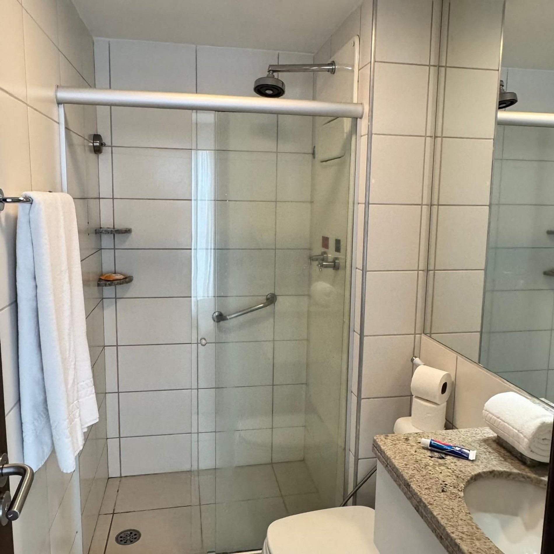 O nosso prédio dispõe de recepção bilíngue 24h, academia, sauna, restaurante das 06:30 as 22:30h.