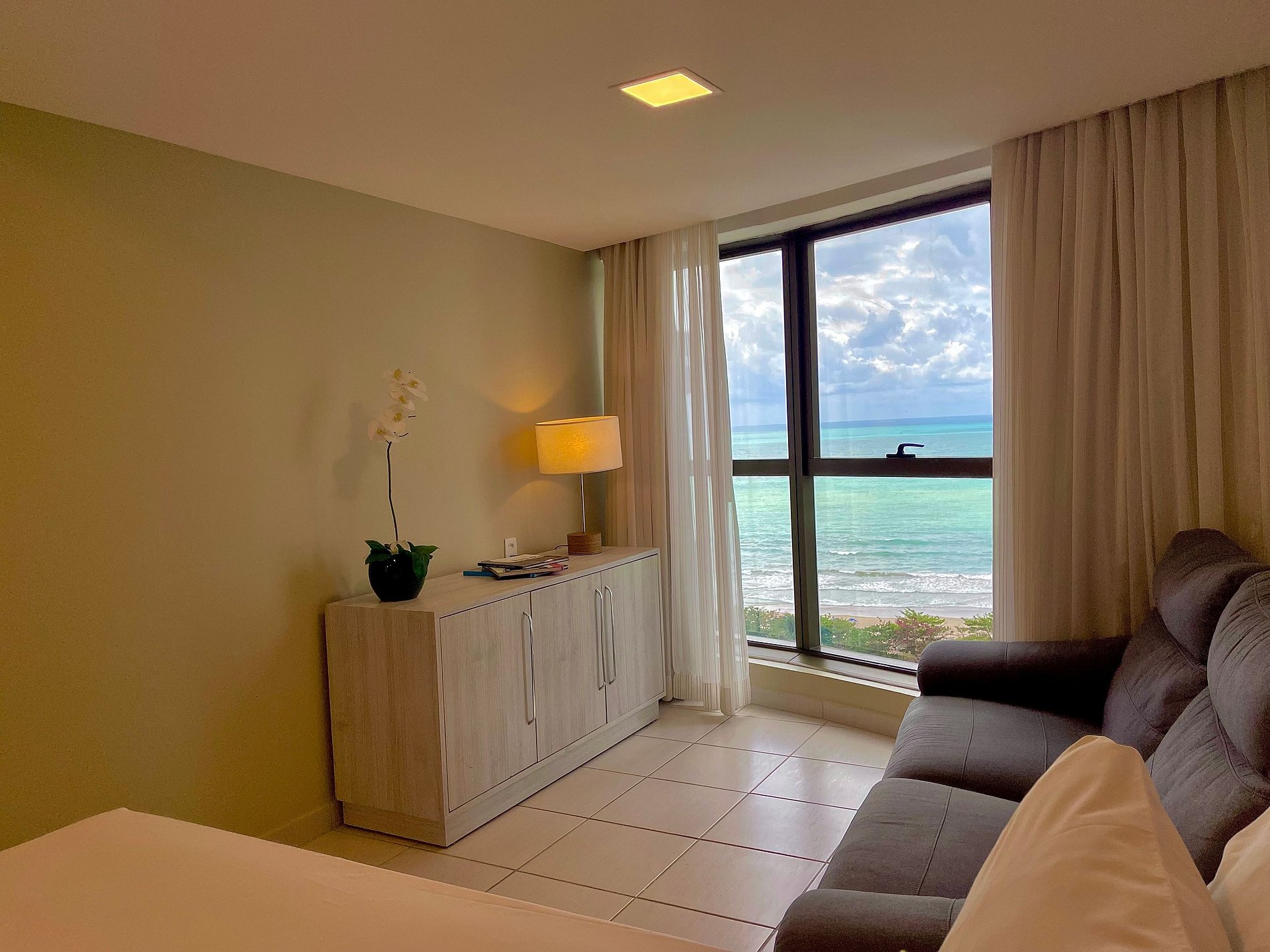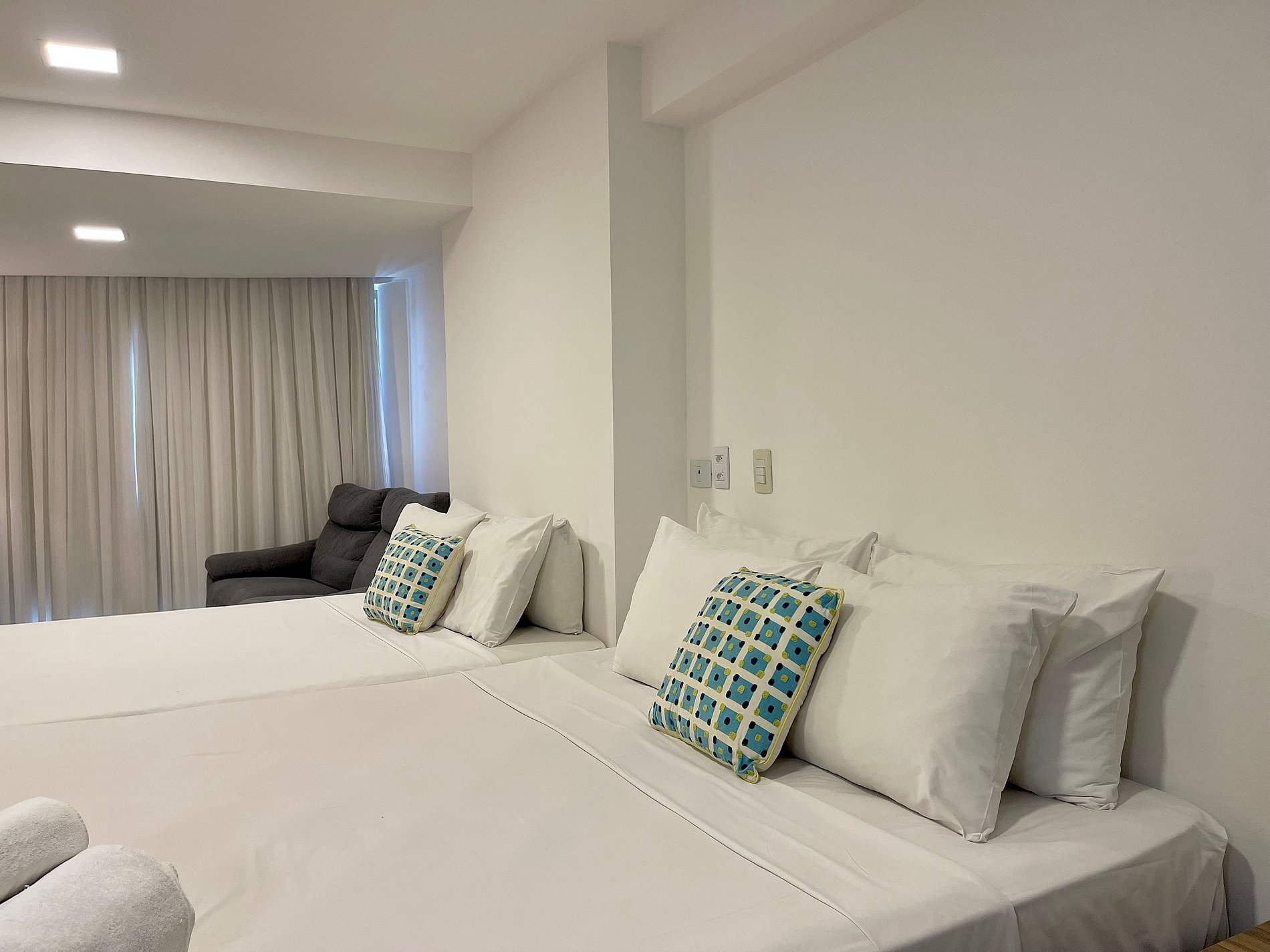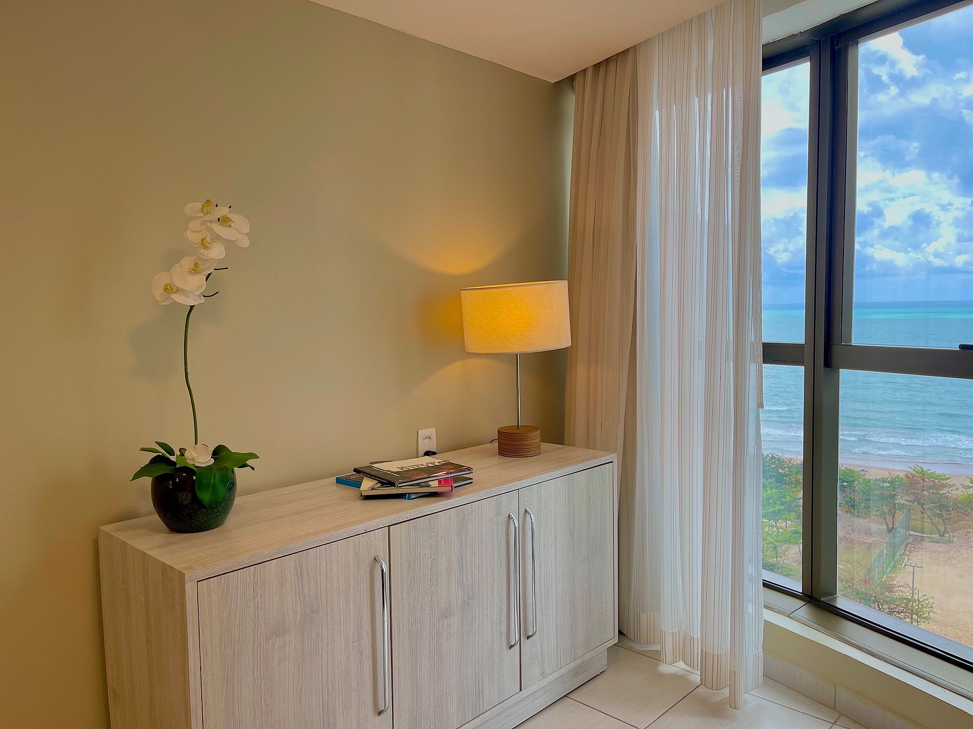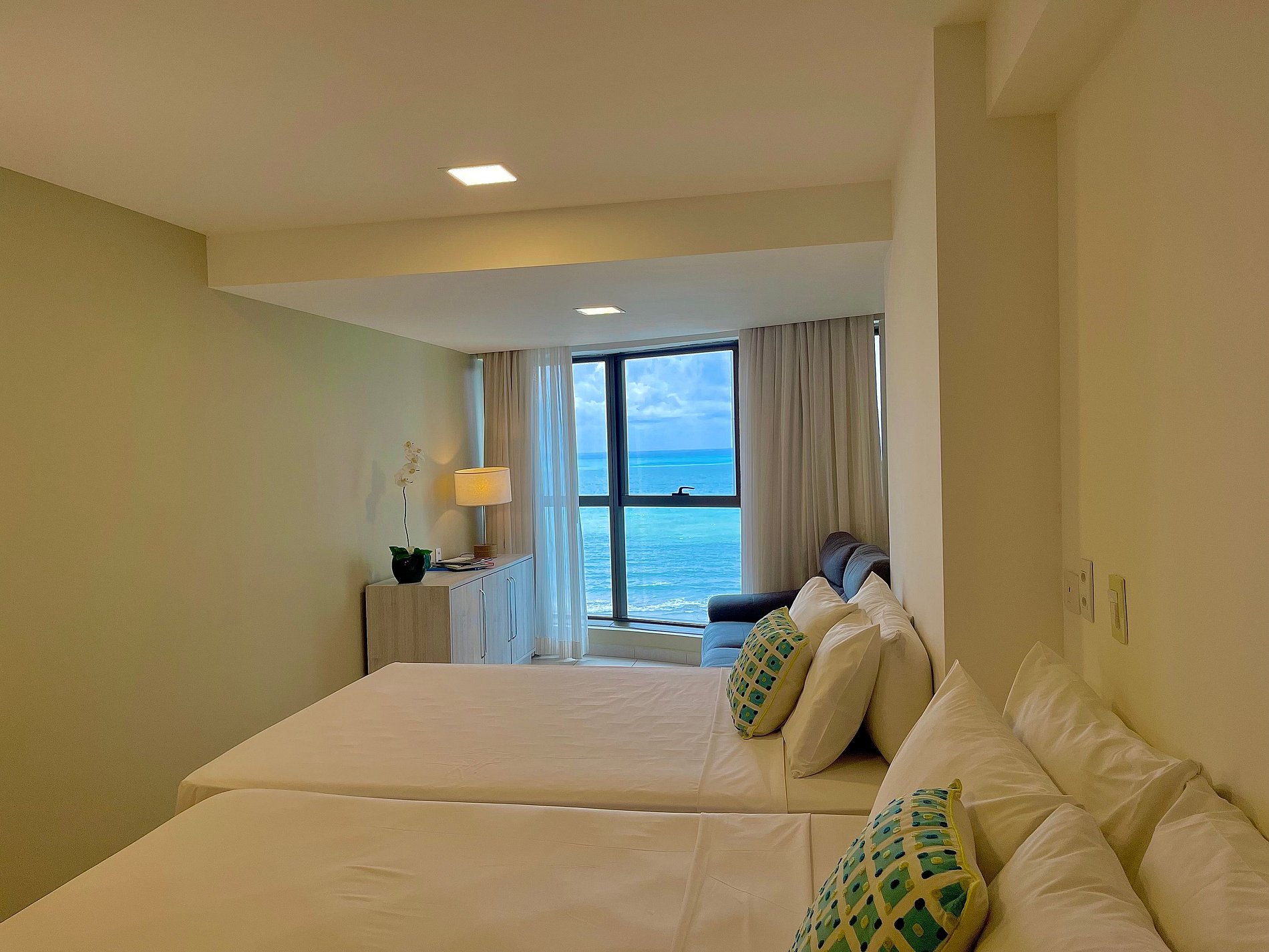 Apartamento na beira-mar da Praia de Boa Viagem, com decoração clean e minimalista. Oferece duas camas de casal, TV a cabo, sofá-cama, Wi-Fi gratuito, frigobar, micro-ondas, cooktop, Split e cofre eletrônico. A sala de estar e jantar são integradas, com cortinas blackout e sistema de iluminação diferenciado. O prédio conta com recepção bilíngue 24h, academia, sauna, restaurante e estacionamento com manobrista. Localizado em área nobre, próximo a shoppings, restaurantes, bares e conveniências.