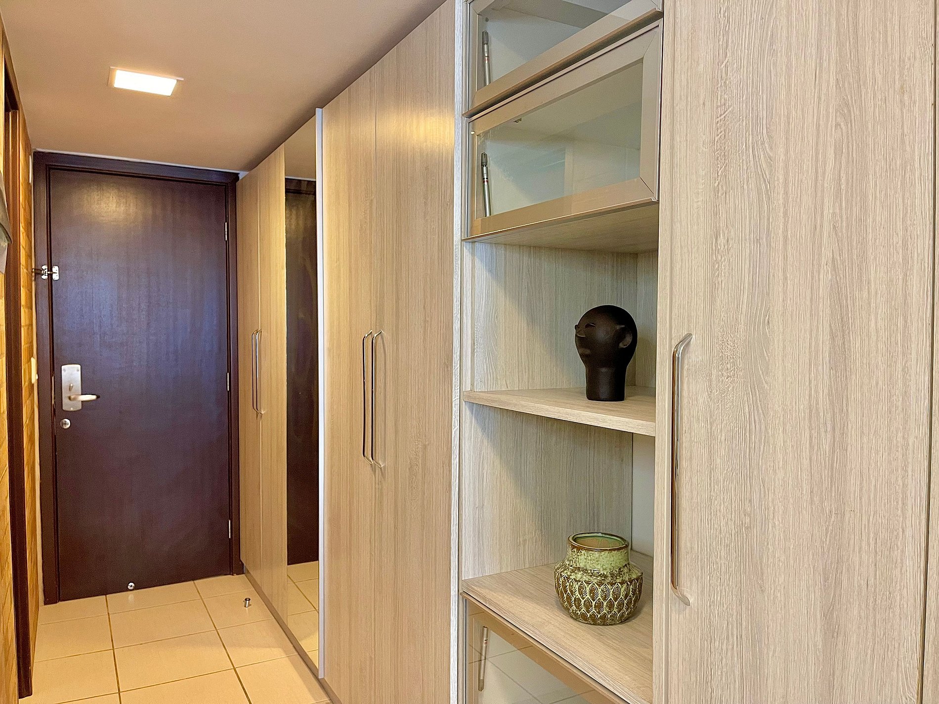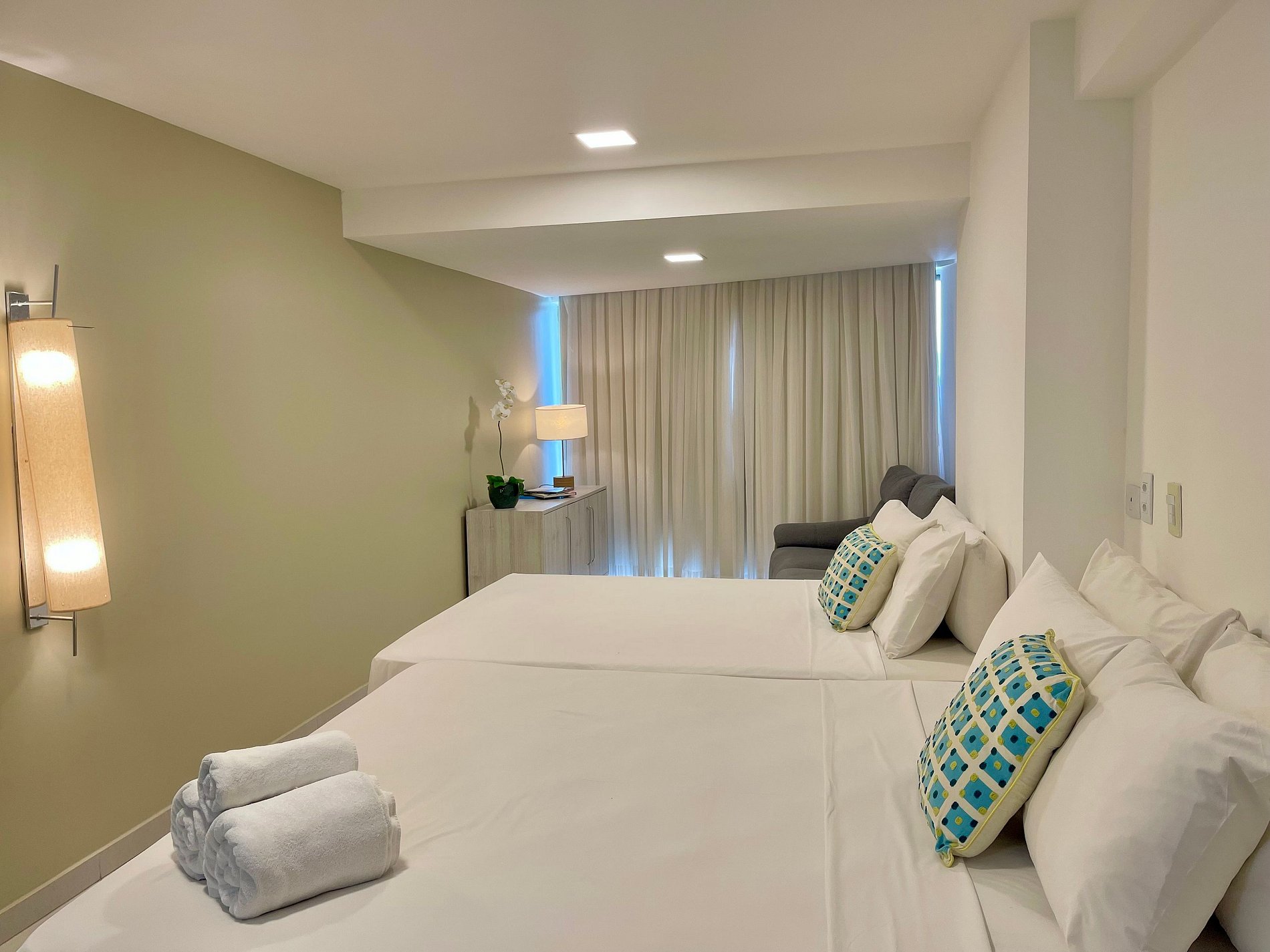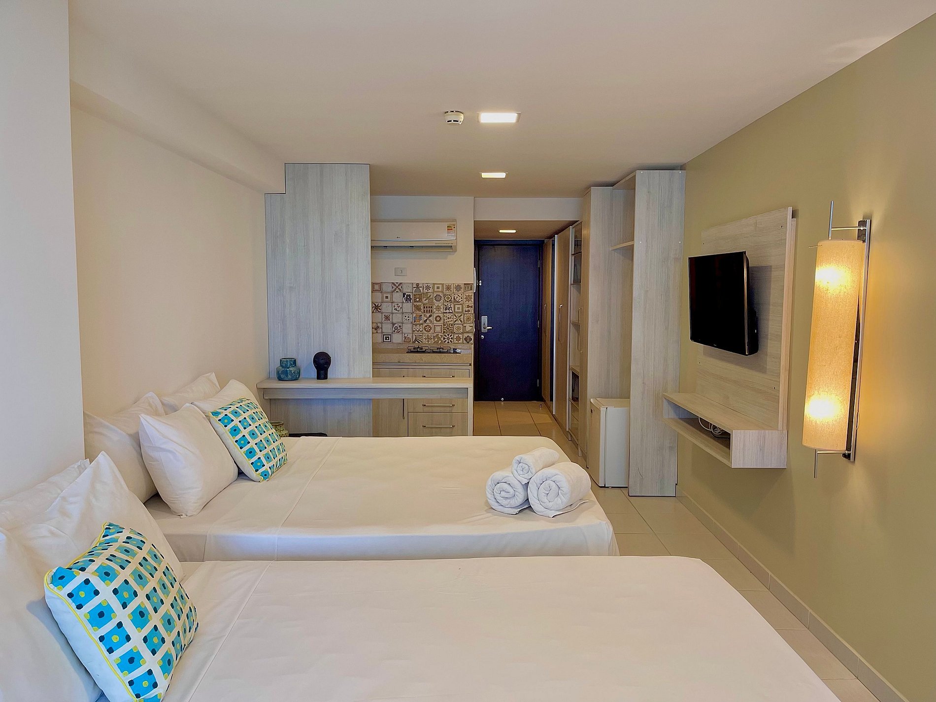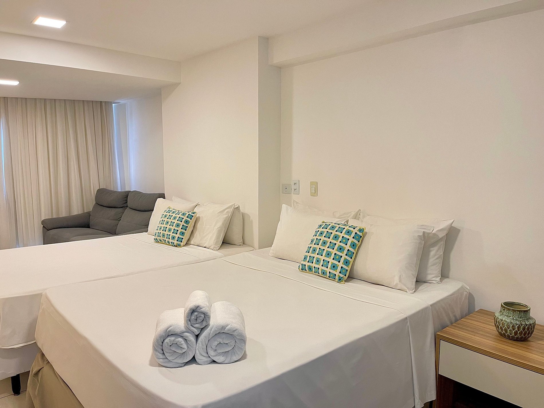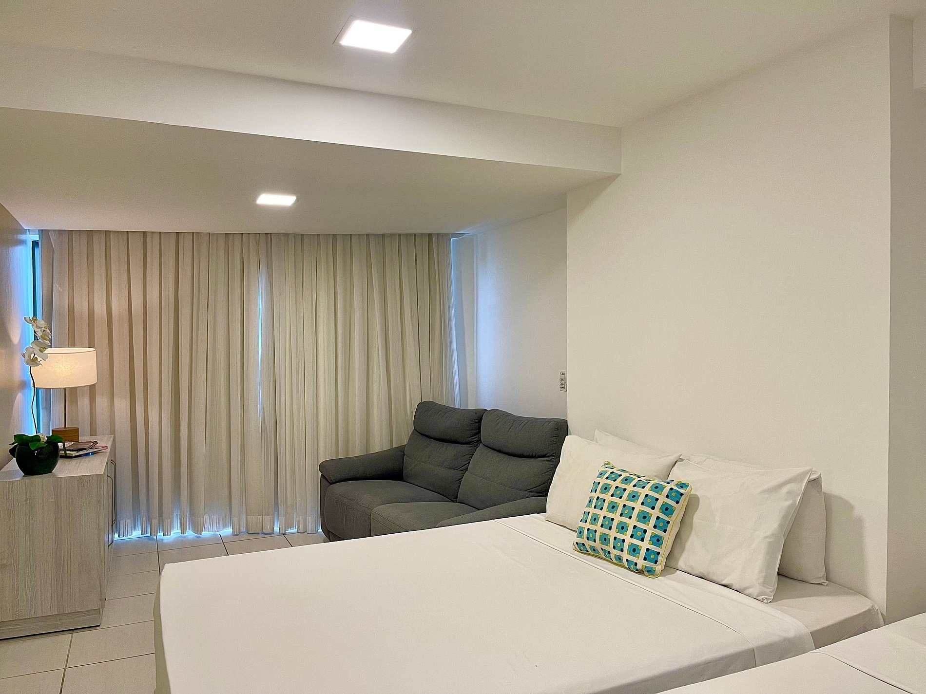 Apartamento na beira-mar da Praia de Boa Viagem, com decoração clean e minimalista. Oferece duas camas de casal, TV a cabo, sofá-cama, Wi-Fi gratuito, frigobar, micro-ondas, cooktop, Split e cofre eletrônico. A sala de estar e jantar são integradas, com cortinas blackout e sistema de iluminação diferenciado. O prédio conta com recepção bilíngue 24h, academia, sauna, restaurante e estacionamento com manobrista. Localizado em área nobre, próximo a shoppings, restaurantes, bares e conveniências.