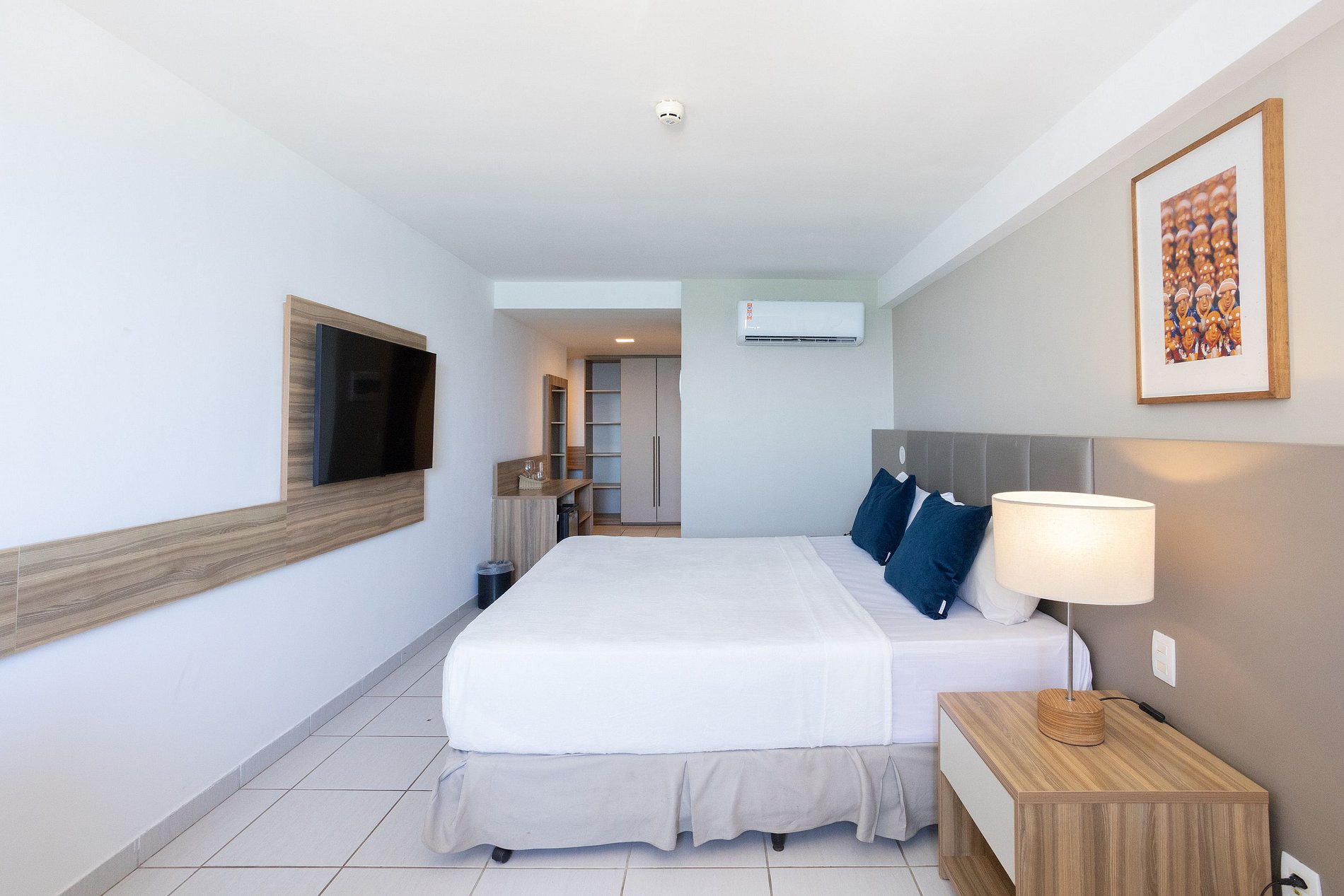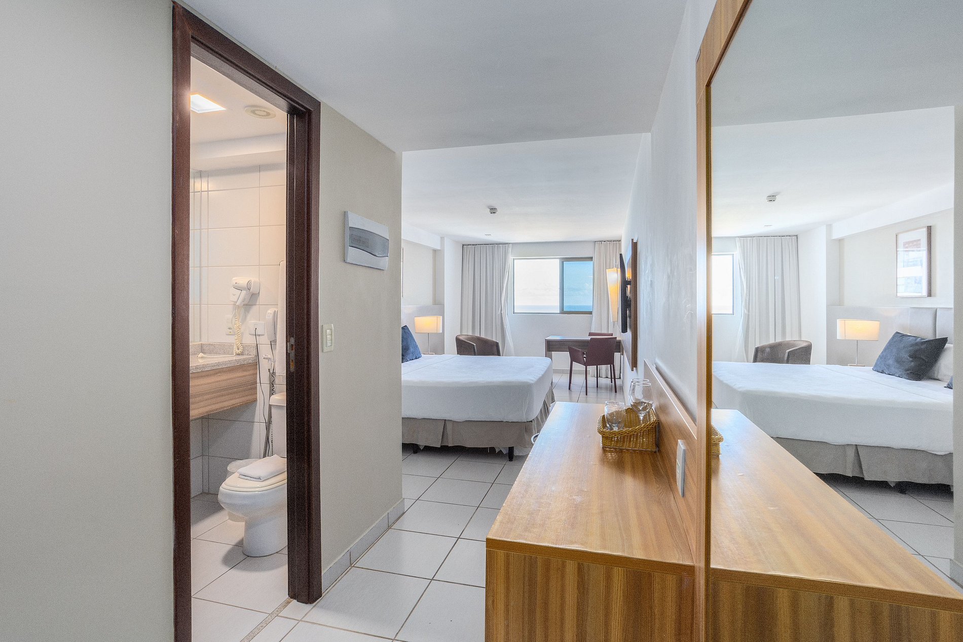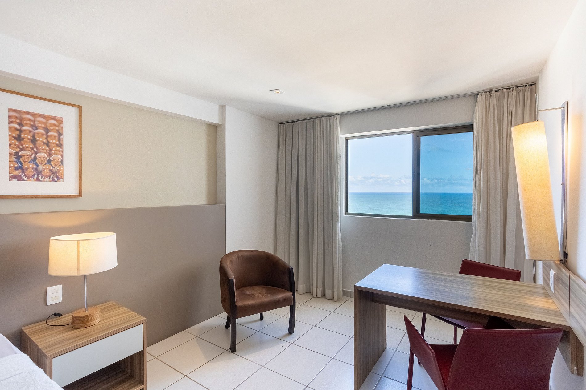 Apartamento minimalista em Boa Viagem, Recife, com cama king size + cama de solteiro, TV a cabo, Wi-Fi e vista para o mar. O prédio oferece recepção 24h, academia, sauna, restaurante e estacionamento com manobrista. Próximo a shoppings, restaurantes e bares. O apartamento inclui frigobar, ar condicionado, cofre, secador de cabelo e ferro elétrico, garantindo conforto e praticidade durante a estadia.