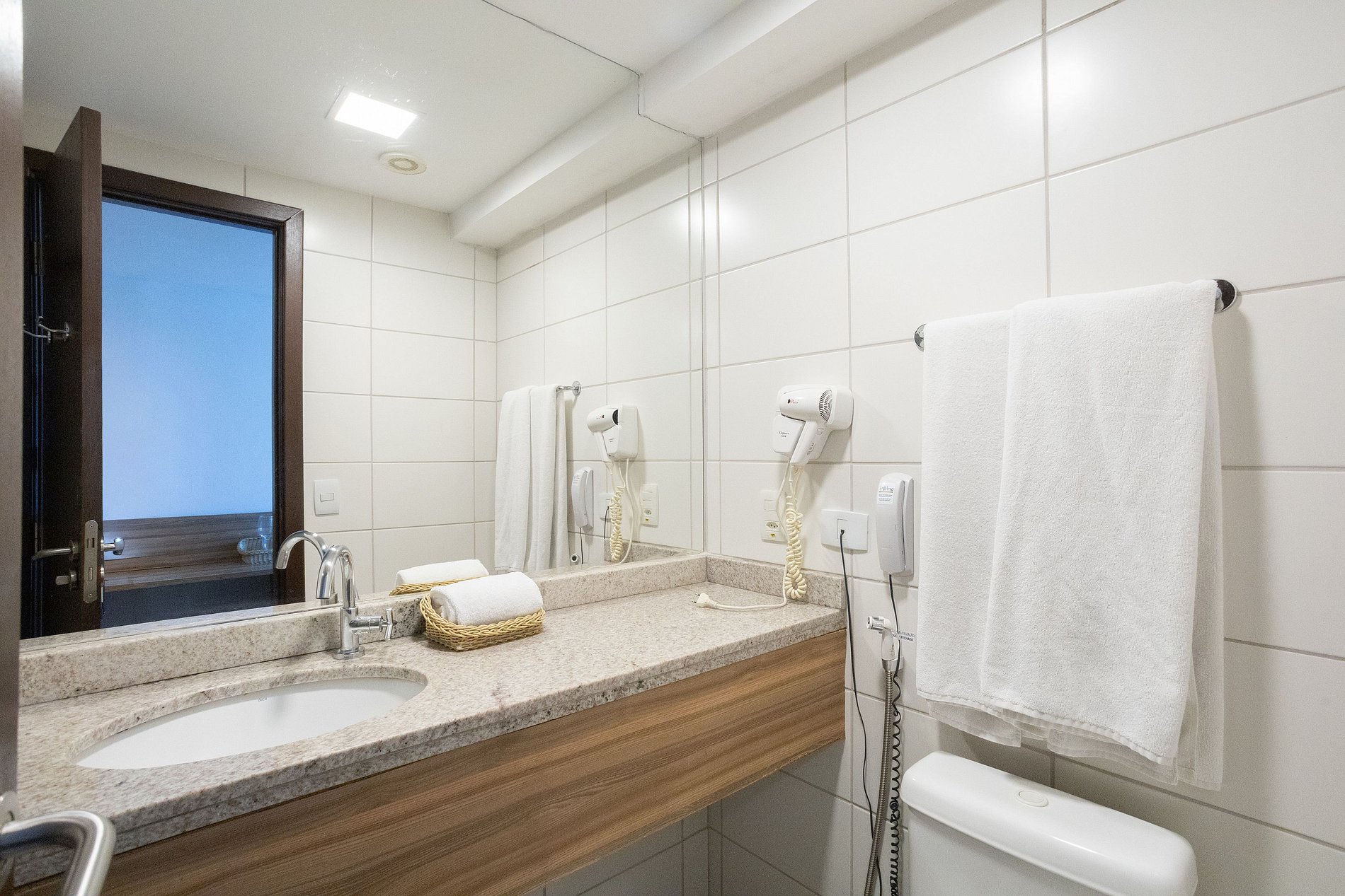 O nosso prédio dispõe de recepção bilíngue 24h, academia, sauna, restaurante das 06:30 as 22:30h.