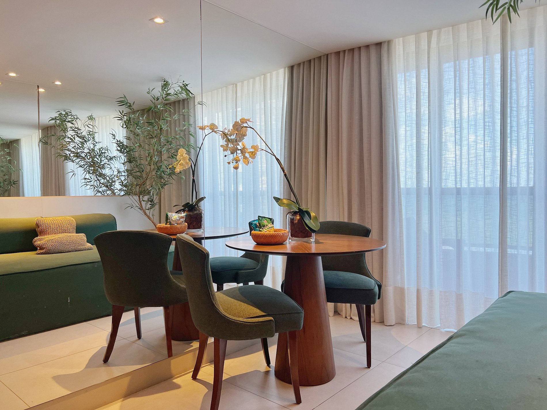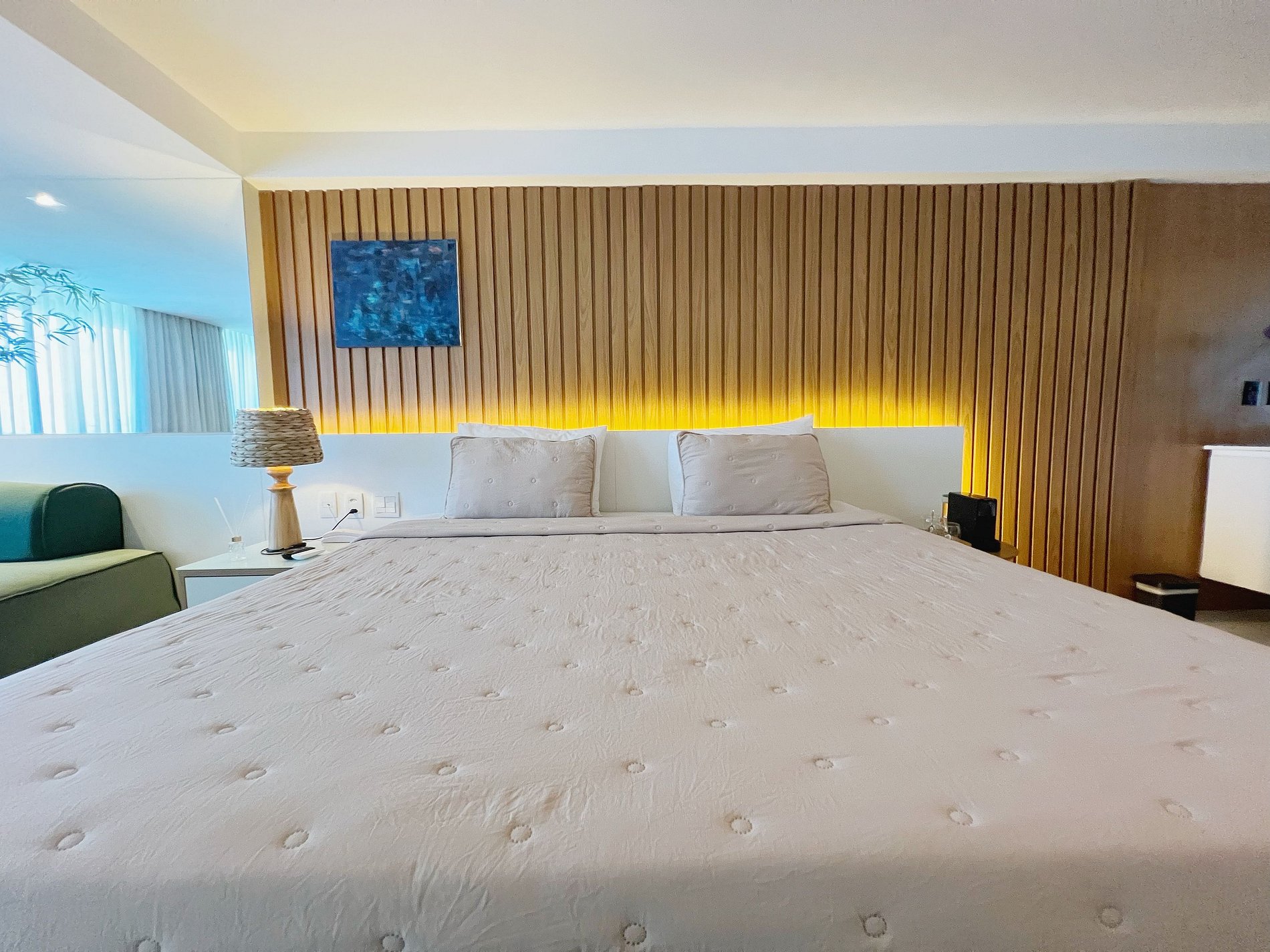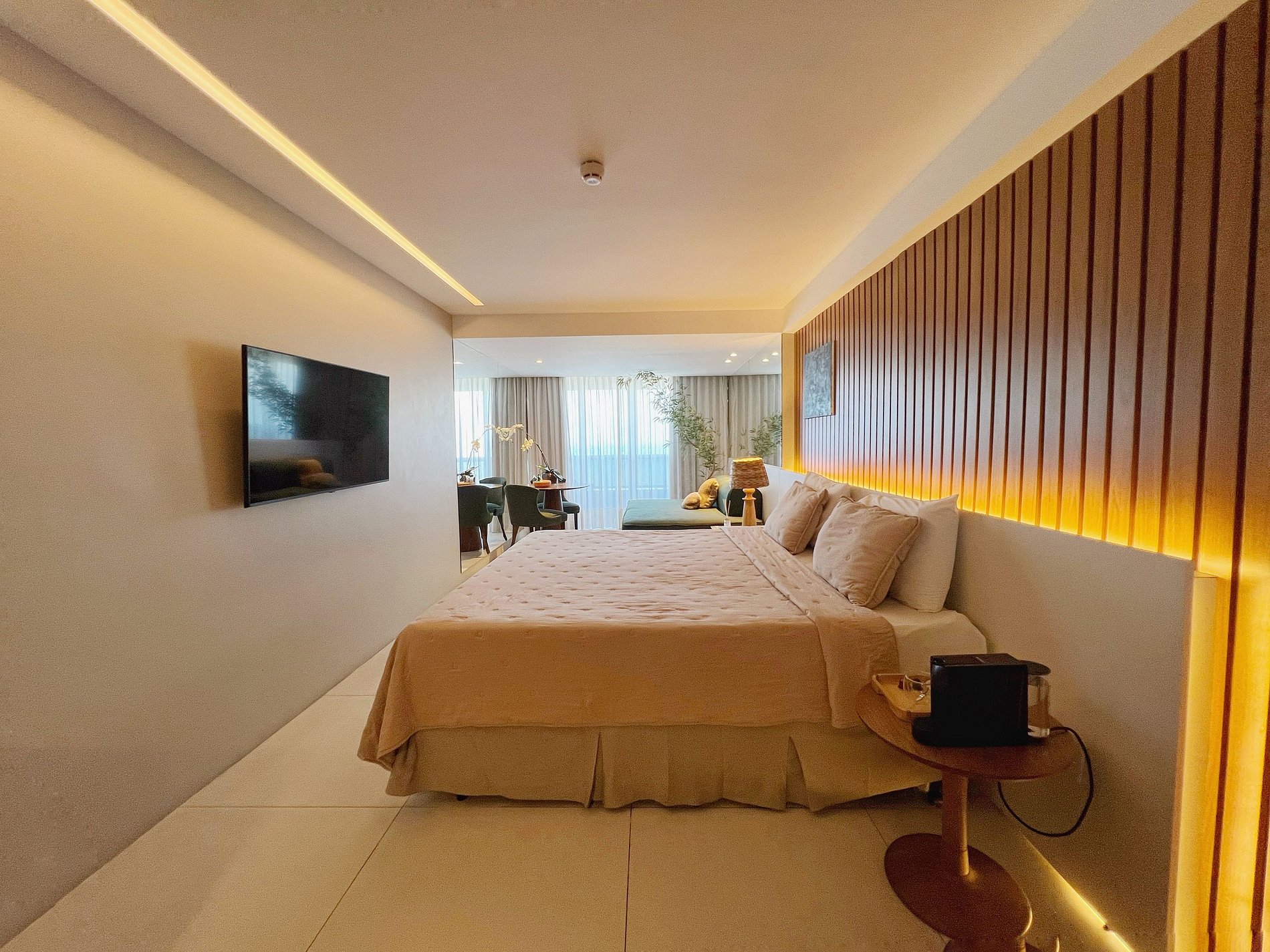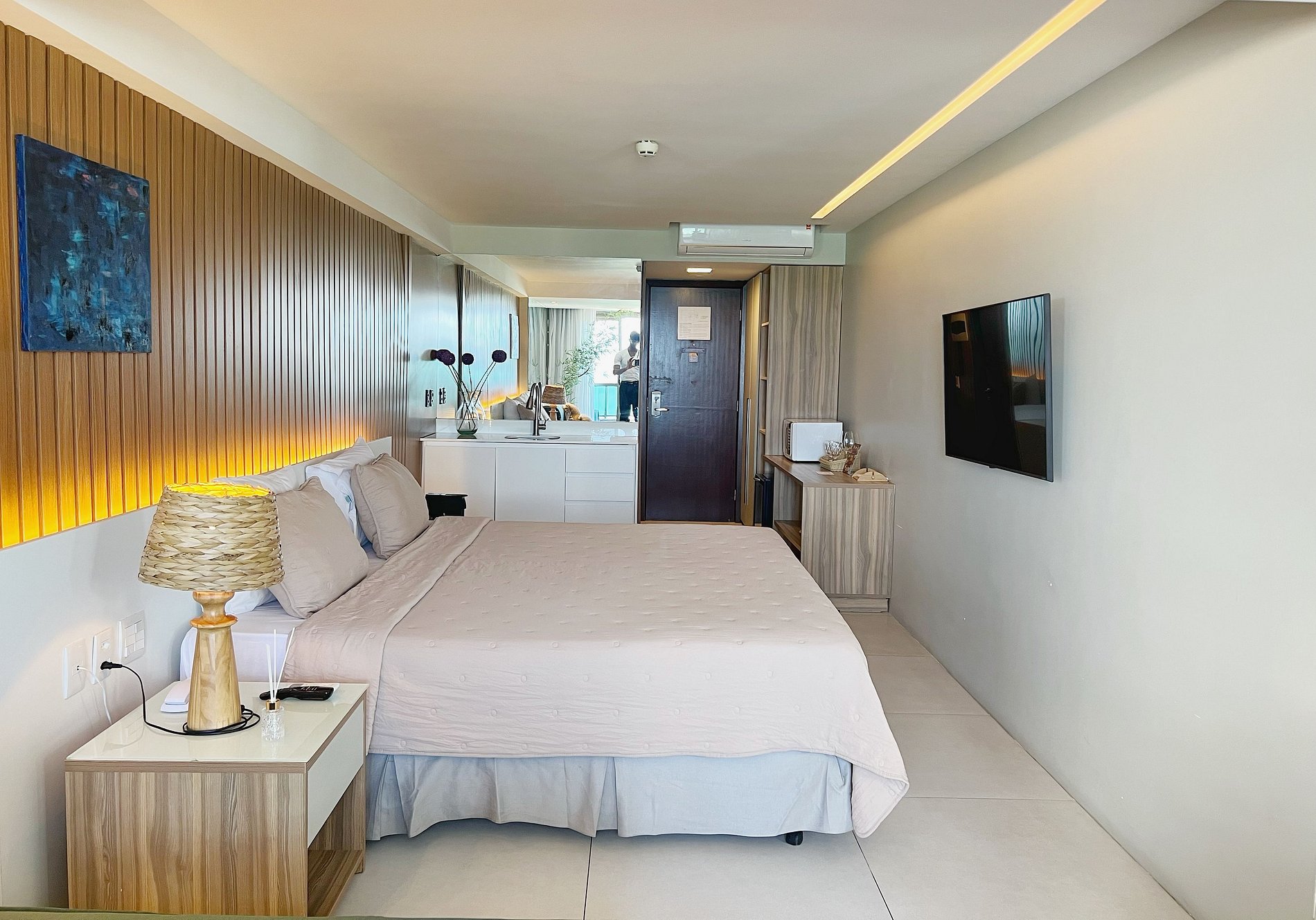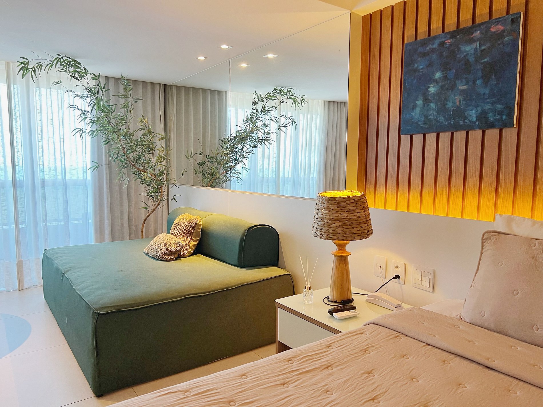 Apartamento com varanda e vista panorâmica do mar, decorado por arquiteta, oferece cama king size, sofá-cama, TV Smart, sala de estar e jantar integradas, iluminação diferenciada, cortinas black out, mesa de jantar/trabalho, frigobar, micro-ondas, Split, cofre eletrônico, balcão com pia e vista deslumbrante da praia de Boa Viagem. Ideal para lazer ou trabalho, proporcionando conforto e contato com a natureza. O prédio tem recepção bilíngue 24h, academia, sauna, restaurante (06:30 às 22:30) .
