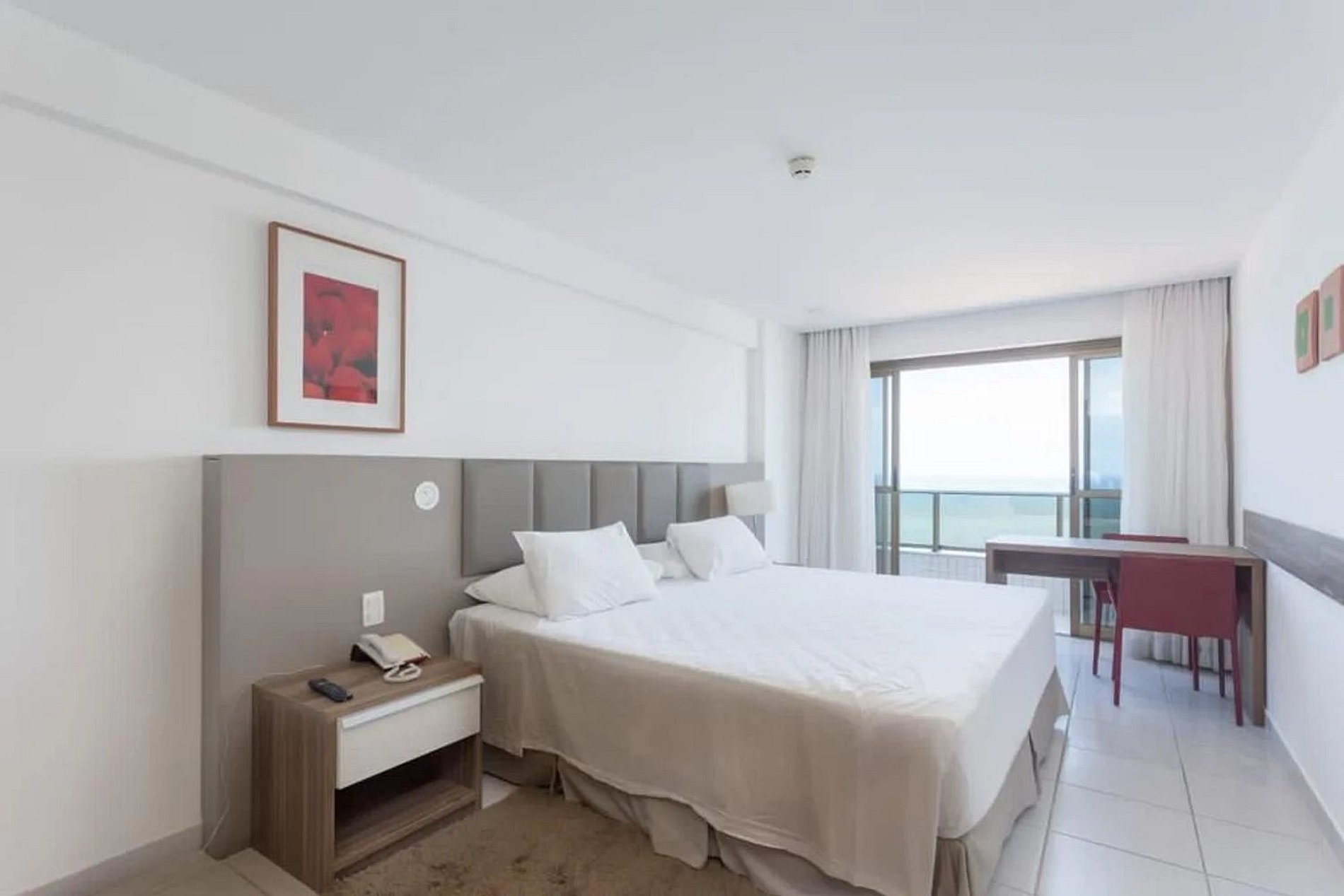 Apartamento com varanda e vista para a praia de Boa Viagem, equipado com cama king size, cama de solteiro, TV a cabo, frigobar, Split, cofre eletrônico, cortinas blackout, Wi-Fi gratuito e iluminação diferenciada. O prédio oferece recepção bilíngue 24h, academia, sauna, restaurante, estacionamento com manobrista 24h, ferro elétrico e secador de cabelo. Localizado em área nobre de Recife, perto de shoppings, restaurantes e a 15 minutos do Aeroporto Internacional.