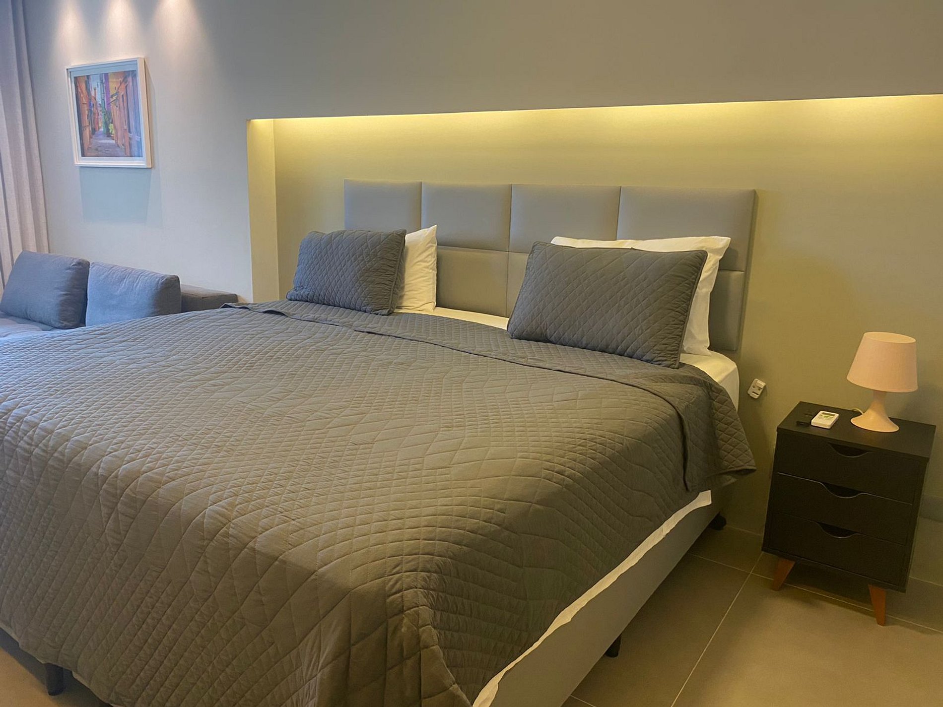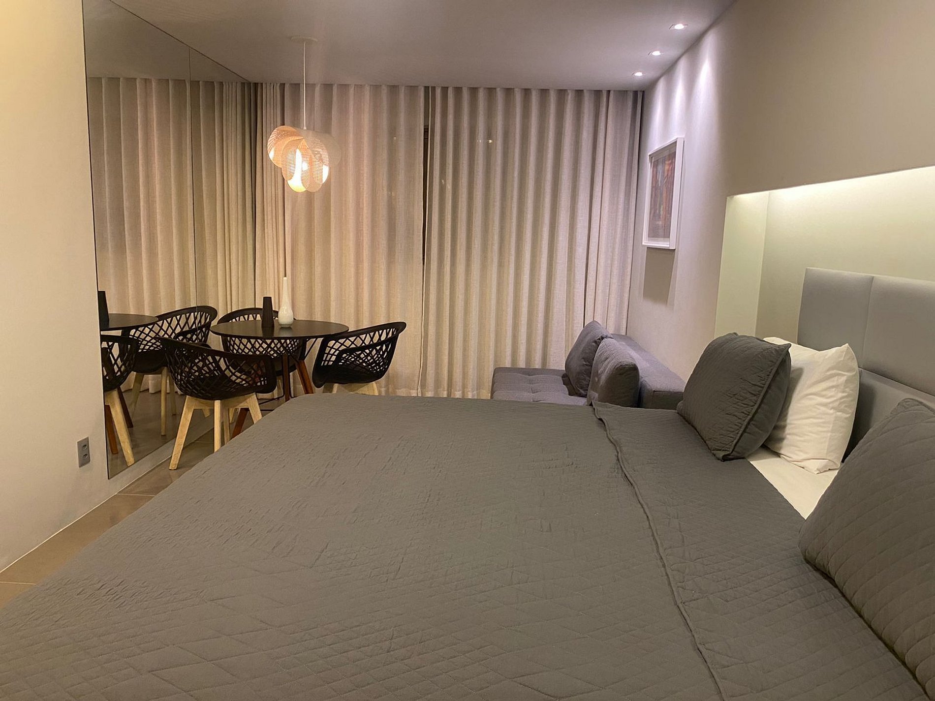Apartamento com decoração clean e minimalista, com uma confortável cama Queen + sofá cama, TV a cabo, sistema de iluminação diferenciado, que deixa o ambiente ainda mais aconchegante, cortinas com Black out, sofá, mesa de jantar/trabalho, cadeiras, frigobar, micro-ondas, Split, cofre eletrônico, balcão com pia e uma maravilhosa vista da praia de Boa Viagem. Wi-fi gratuito. Apartamento pensado nos mínimos detalhes, afim de proporcionar aos nossos hóspedes todo o conforto e aconchego de suas casas. O nosso prédio dispõe de recepção bilíngue 24h, academia, sauna, restaurante das 06:30 as 22:30 h. Durante a sua estadia, estaremos prontos para ajudá-lo via WhatsApp. Estamos localizados em área nobre do Recife, na beira mar da praia de Boa Viagem, muito próximo a shoppings, excelentes restaurantes e bares, salão de beleza, pubs, supermercados e padaria. Para ir caminhando, na rua detrás do prédio, temos uma frutaria com itens básicos de conveniência, alimentos, bebidas, onde também é vendido itens de padaria. Ainda na rua detrás, temos restaurantes de referência, com destaque para o Kojima (culinária japonesa), Tratoria (cozinha italiana), Ça Va, Hot Spot e Botega Bastardi (cozinha internacional). Como dica de bar, para beber e petiscar, temos o Tatu Bola e o Fidalgo. O Shopping Rio Mar e o Consulado Americano ficam a 1km. O Aeroporto Internacional do Recife e o Centro de Convenções ficam a 15 minutos de carro. Para se locomover na cidade, recomendamos alugar um carro ou, se preferir, pegar um taxi ou chamar um uber. Há um ponto de taxi em frente ao prédio. O nosso apartamento dispõe de secador de cabelo potente, ferro elétrico disponível na passadoria do prédio localizado no piso P e outros itens que vão tornar a sua estadia ainda mais agradável. Estacionamento privativo pago na acomodação, serviço de manobrista 24h.